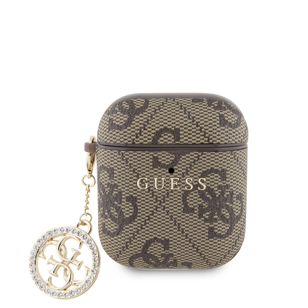 Apple Airpods Kılıf Guess 4G Desenli Taşlı 4G Süs Zincirli Kapak Kahverengi