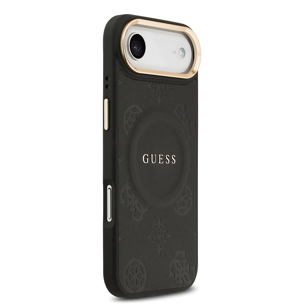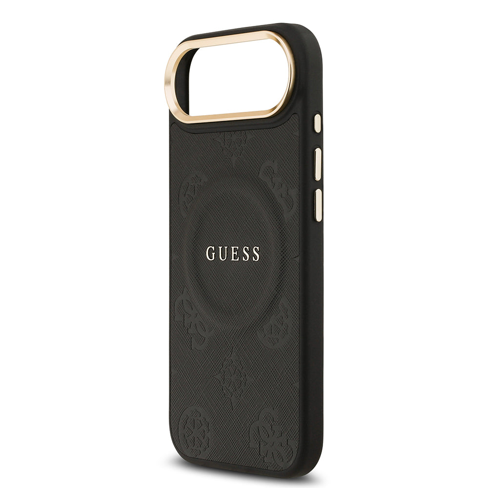 Apple iPhone 17 Air Kılıf Guess M-safe Özellikli Yazı Logolu PU Deri Peony Kapak Siyah
