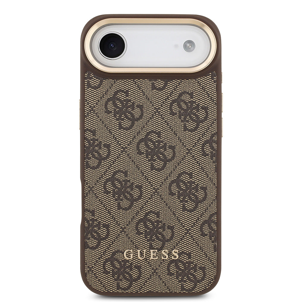 Apple iPhone 17 Air Kılıf Guess M-safe Şarj Özellikli Askılı ve Kartlıklı 4G Logo Kapak Kahverengi