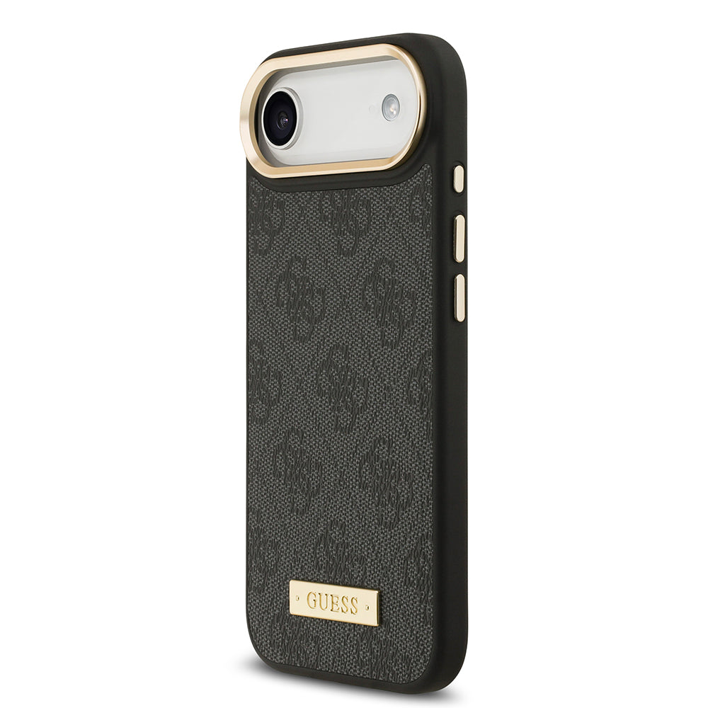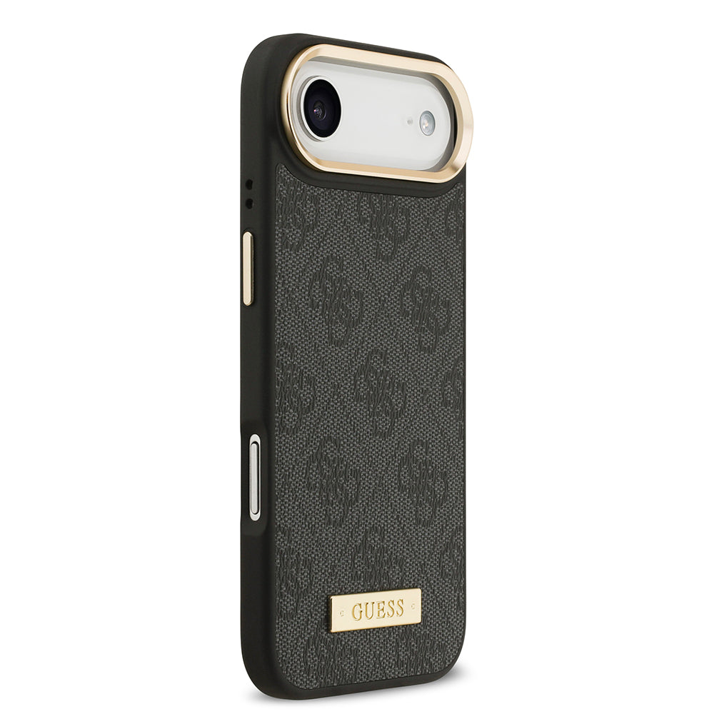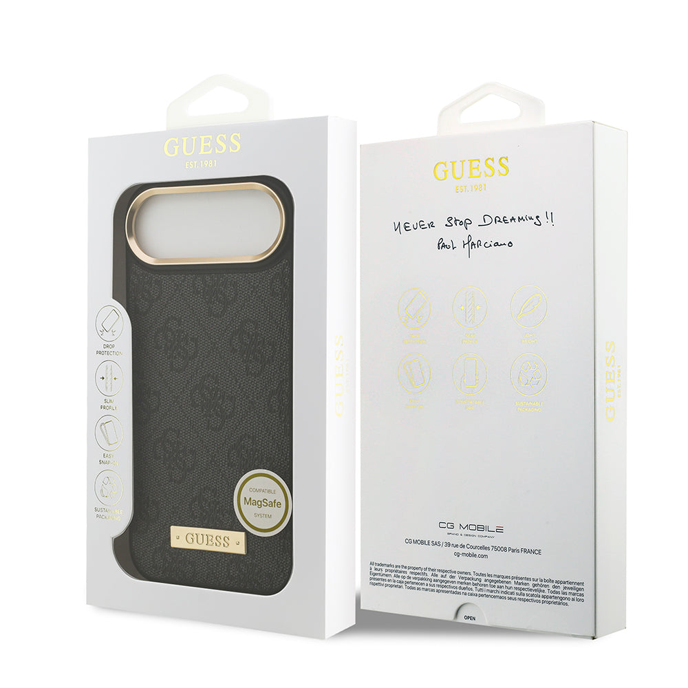 Apple iPhone 17 Air Kılıf Guess Magsafe Şarj Özellikli 4G Desenli PU Metal Plaka Klasik Logolu Kapak Siyah