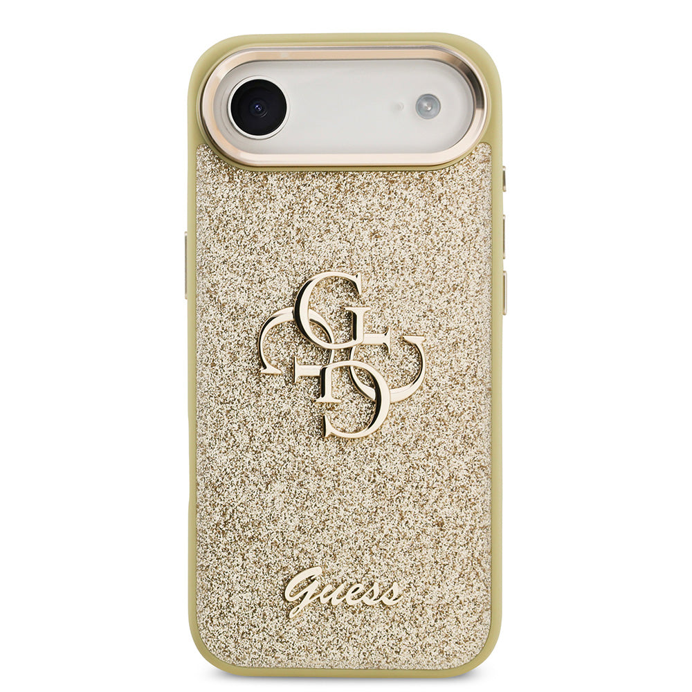 Apple iPhone 17 Air Kılıf Guess Metal Kamera Çerçeveli 4G Büyük Logolu Glitter Kapak Gold
