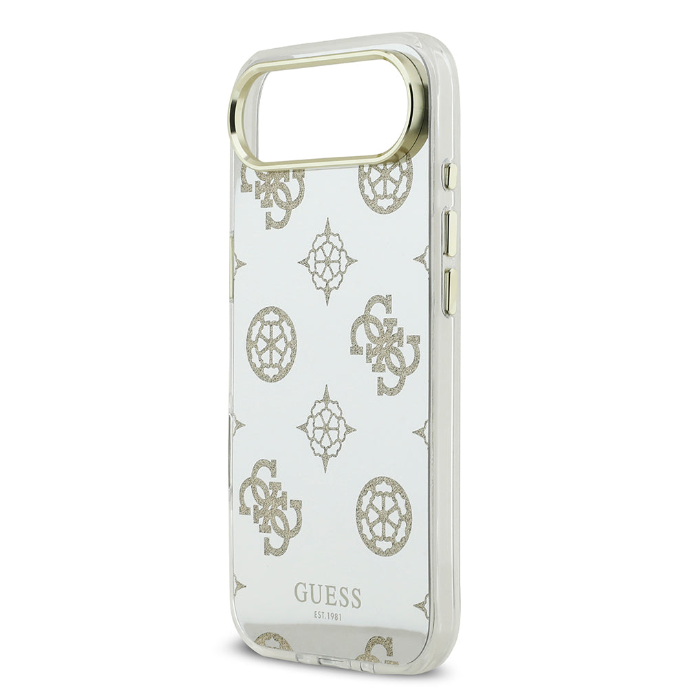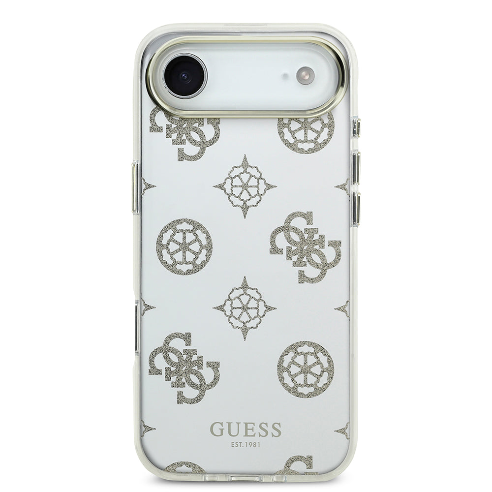 Apple iPhone 17 Air Kılıf M-Safe Şarj Özellikli Guess Metal Kamera Çerçeveli Peony Simli Aynalı Kapak Gold