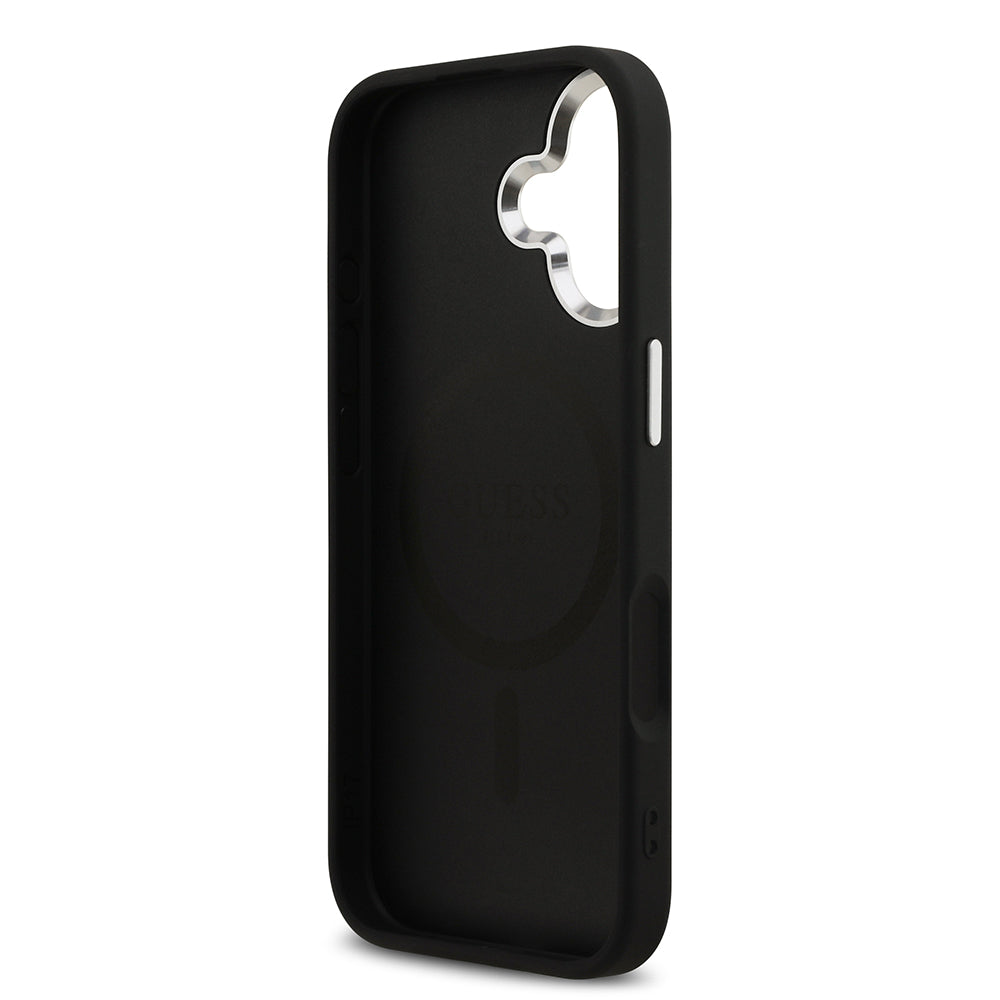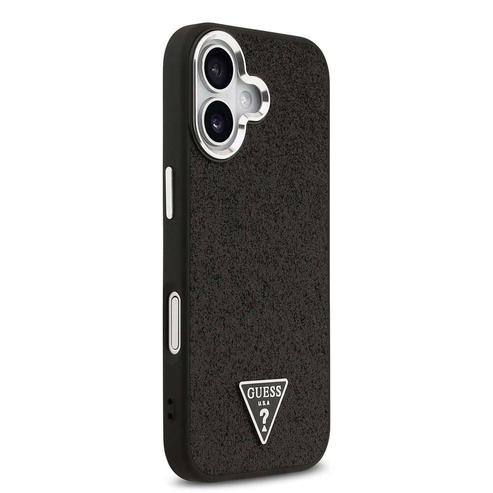 Apple iPhone 17 Kılıf Guess M-safe Şarj Özellikli Üçgen Logolu Glitter Kapak Siyah