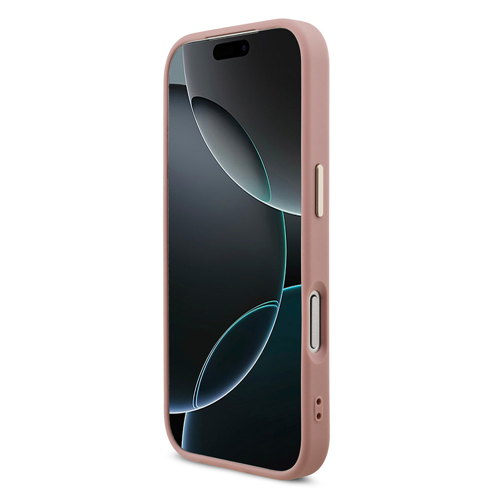 Apple iPhone 17 Pro Kılıf Guess 4G Büyük Metal Logolu Glitter Kapak Pembe