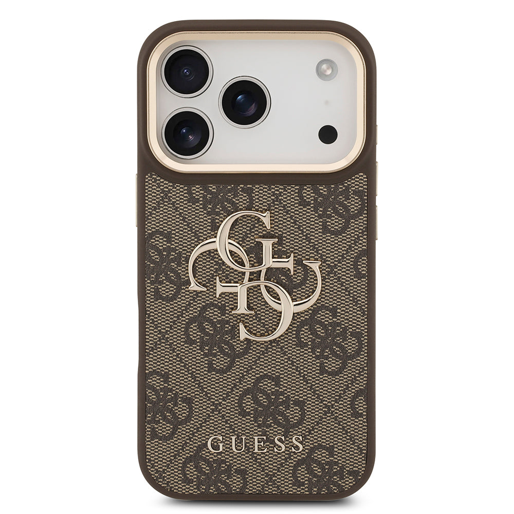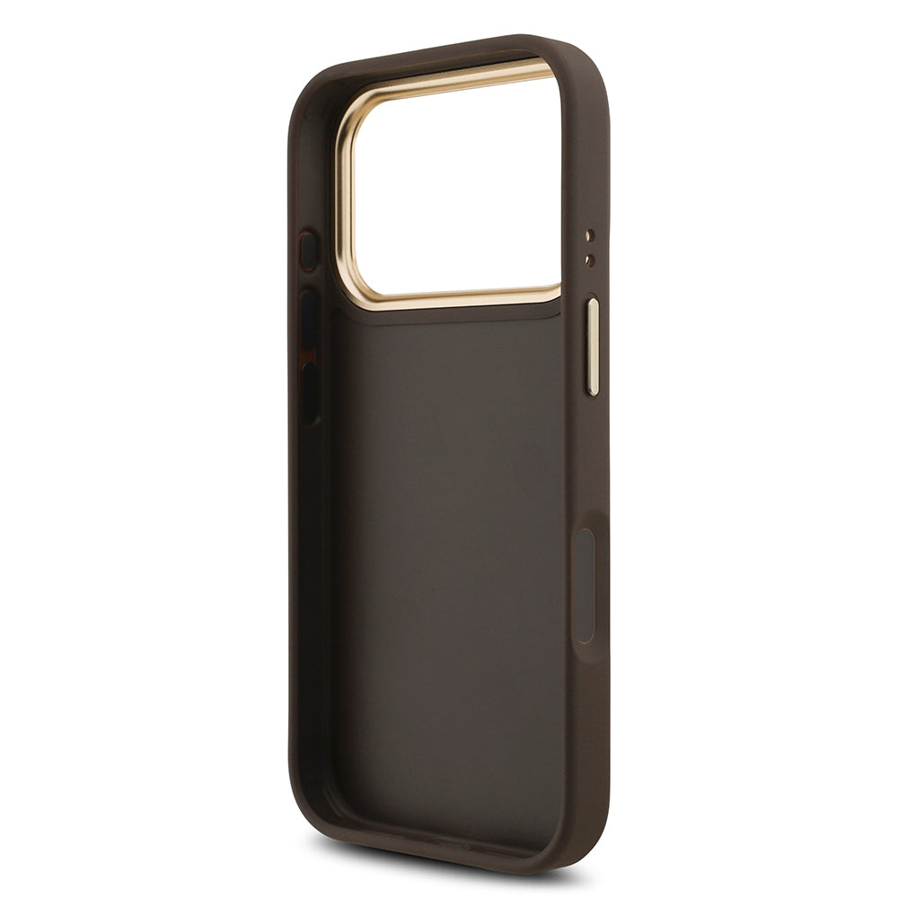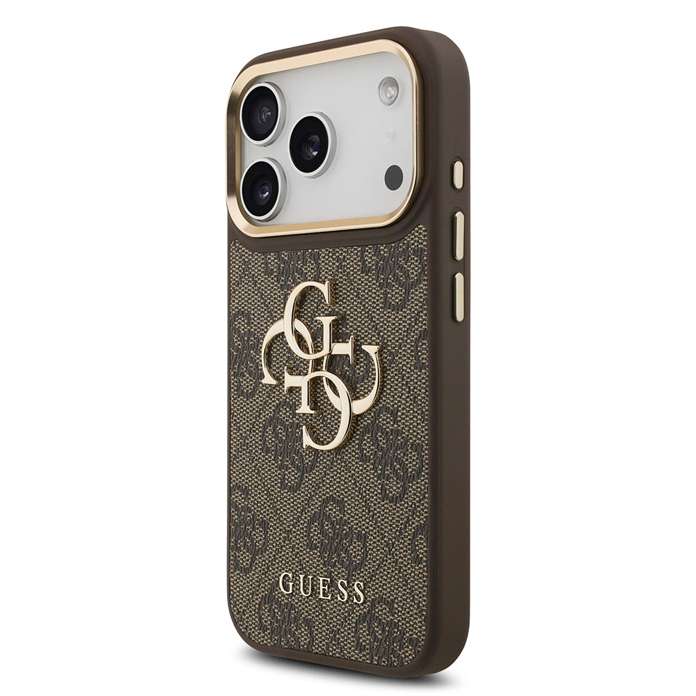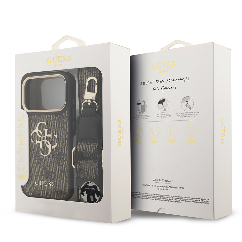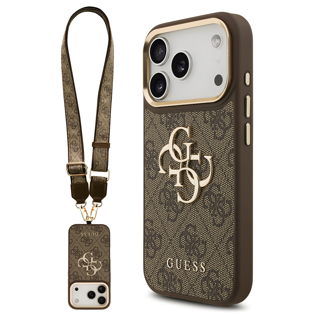 Apple iPhone 17 Pro Kılıf Guess 4G Büyük Metal Logolu Kalın Askılı Kapak Kahverengi