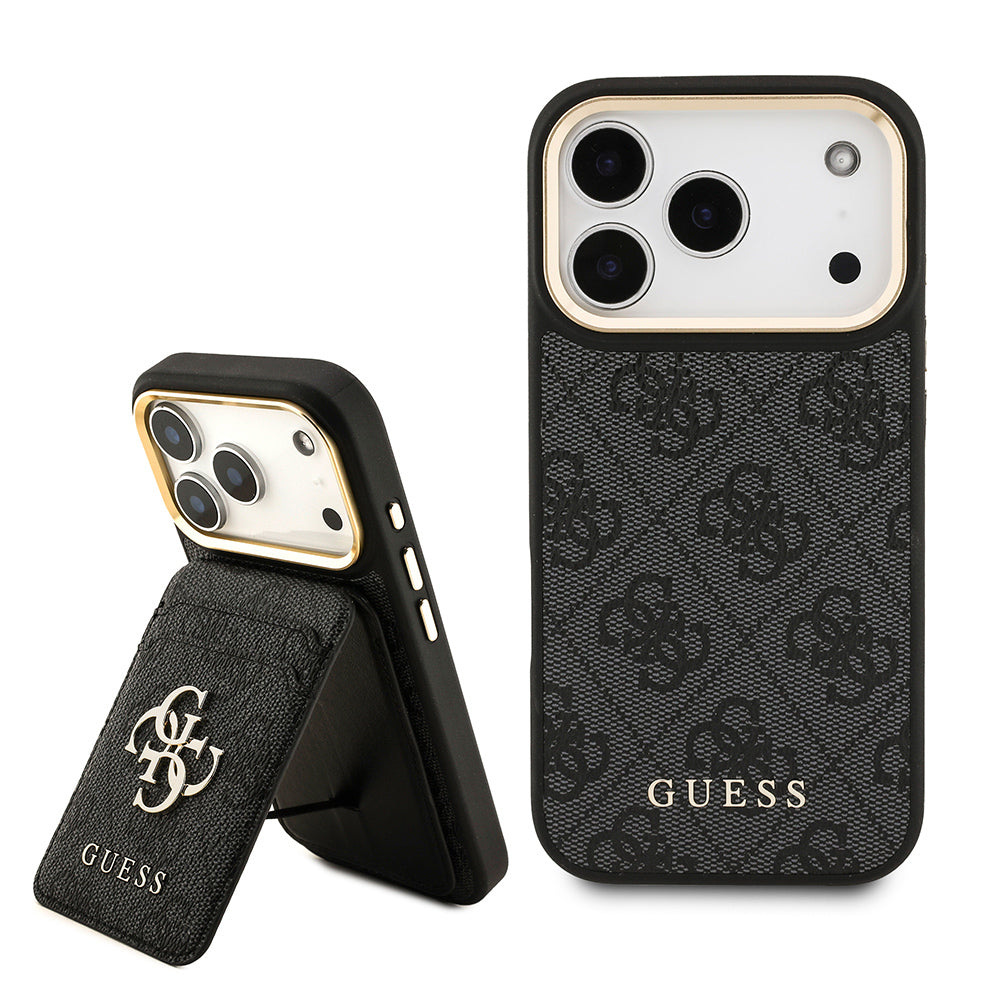 Apple iPhone 17 Pro Kılıf Guess M-safe Şarj Özellikli 2in1 4G Metal Büyük Logolu Kartlıklı Kapak Siyah
