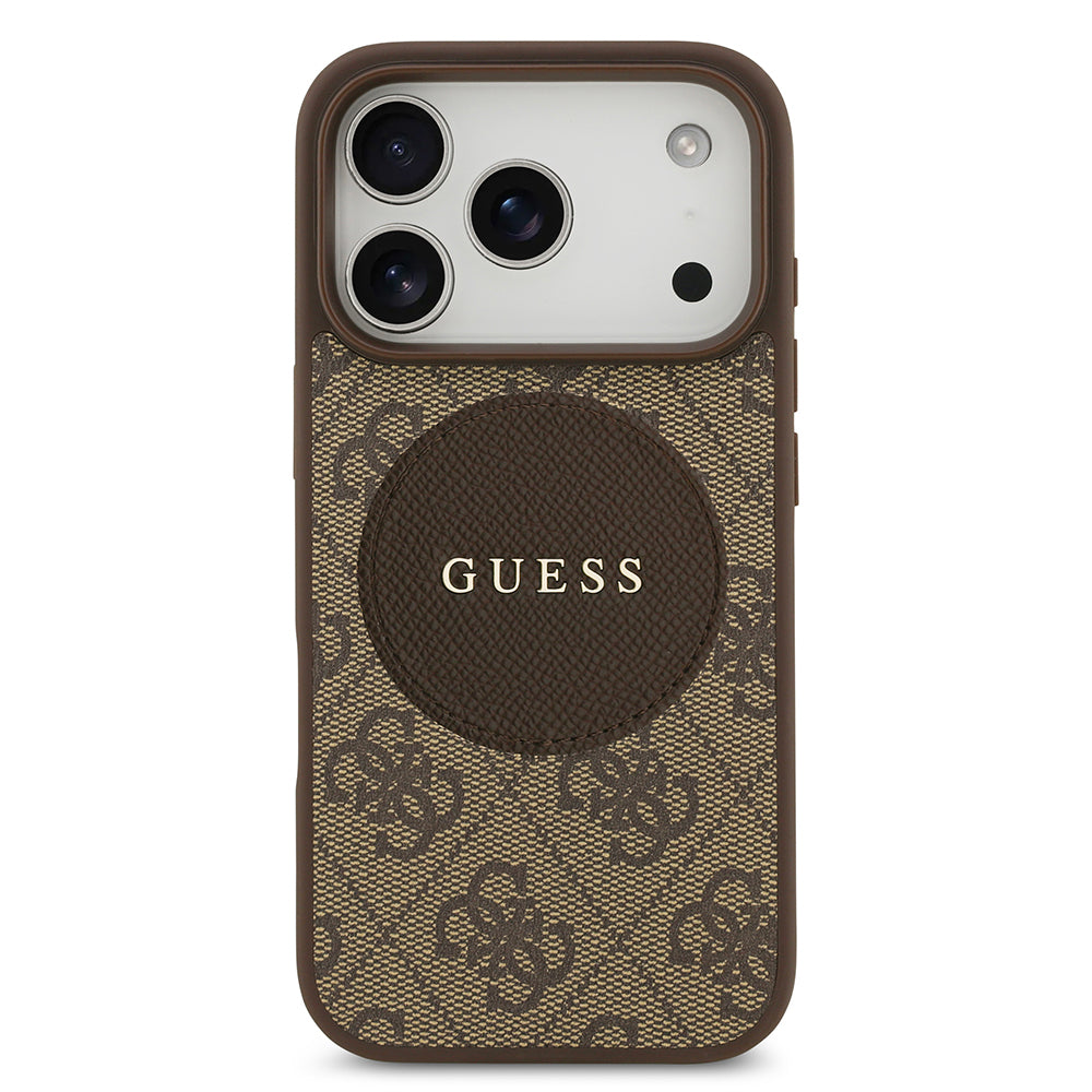 Apple iPhone 17 Pro Kılıf Guess M-Safe Şarj Özellikli Circle Classic Kapak Kahverengi