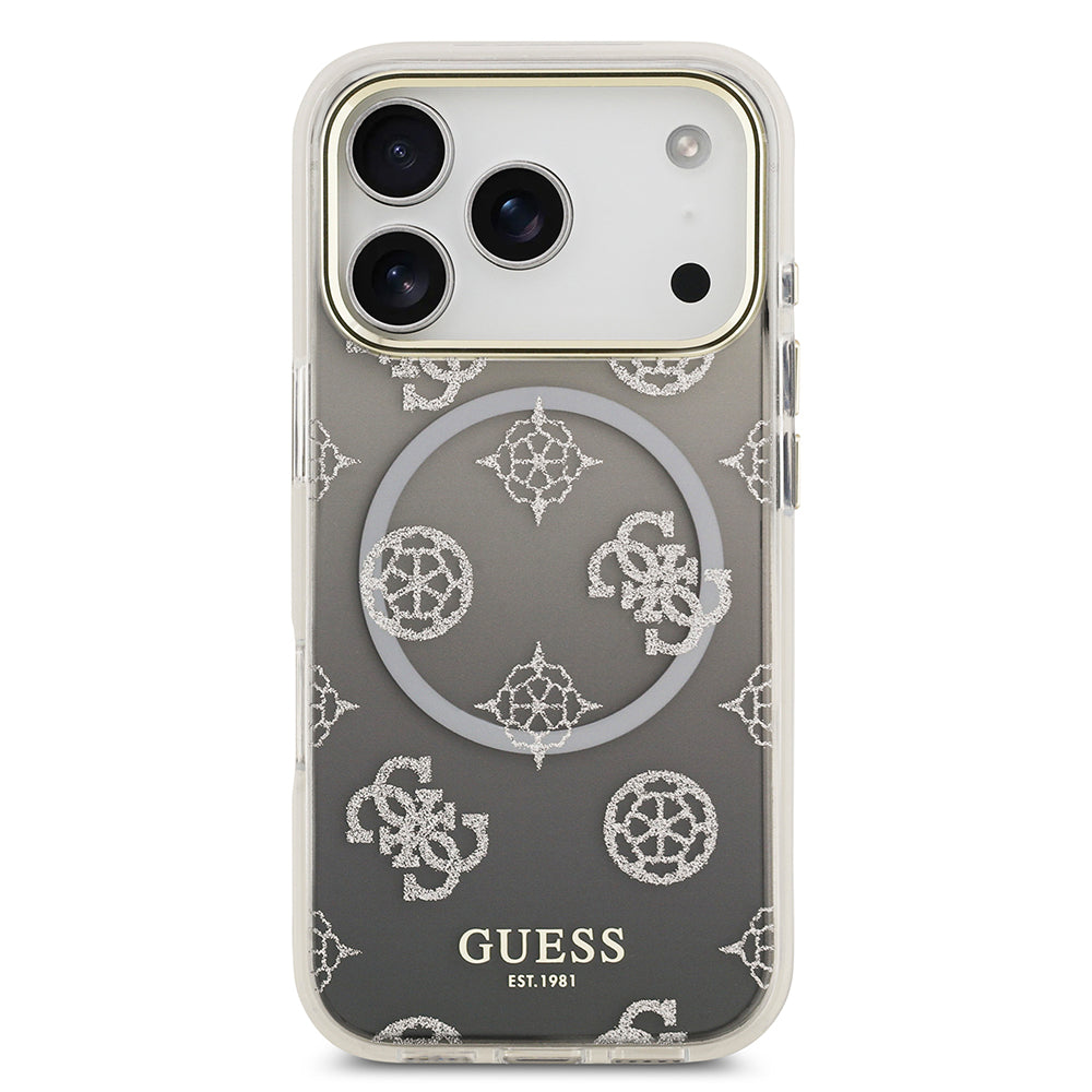 Apple iPhone 17 Pro Kılıf Guess Simli Peony Desenli M-safe Şarj Özellikli Sert Silikon Kapak Siyah