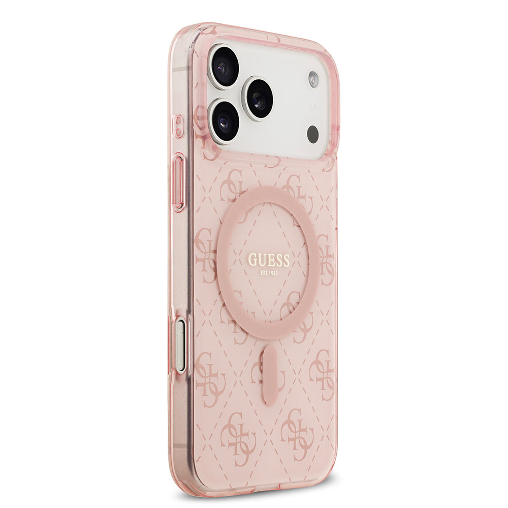 Apple iPhone 17 Pro Max Kılıf Guess M-safe Şarj Özellikli IML Baskılı Klasik Logolu 4G Desenli Kapak Pembe