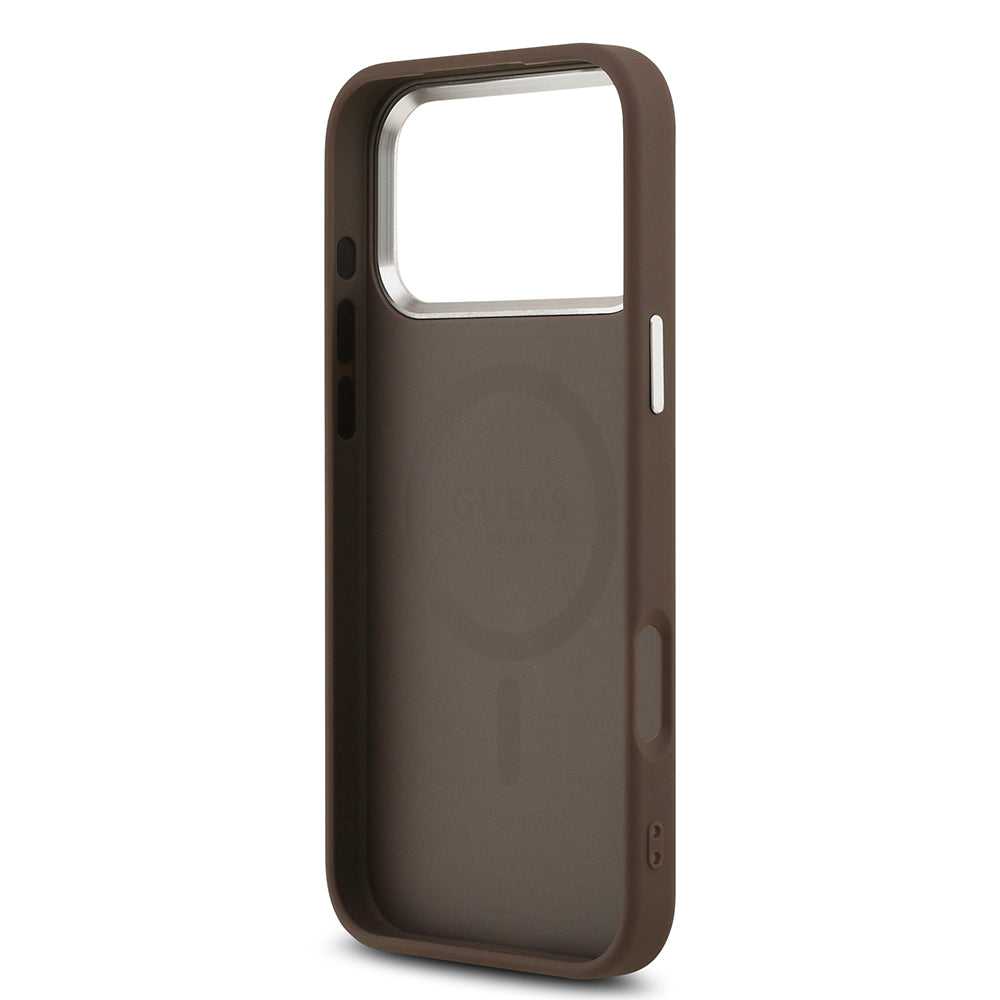Apple iPhone 17 Pro Max Kılıf Guess M-safe Şarj Özellikli Klasik Yazı Logolu PU Deri Kapak Kahverengi