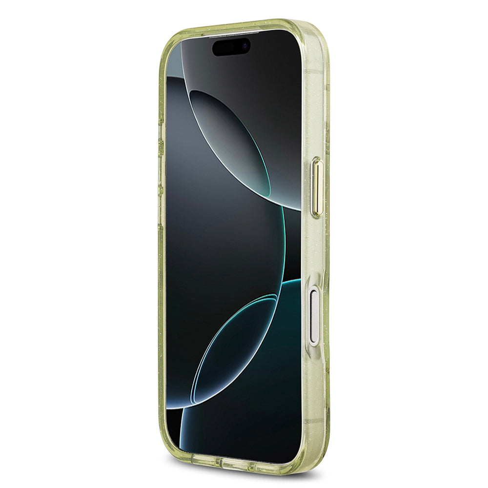 Apple iPhone 17 Pro Max Kılıf Guess M-safe Şarj Özellikli Simli Çiçek Desenli Üçgen Logolu Kapak Yeşil
