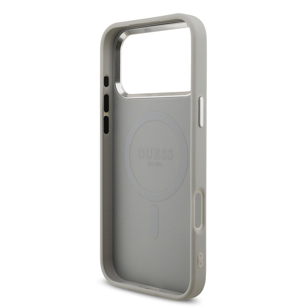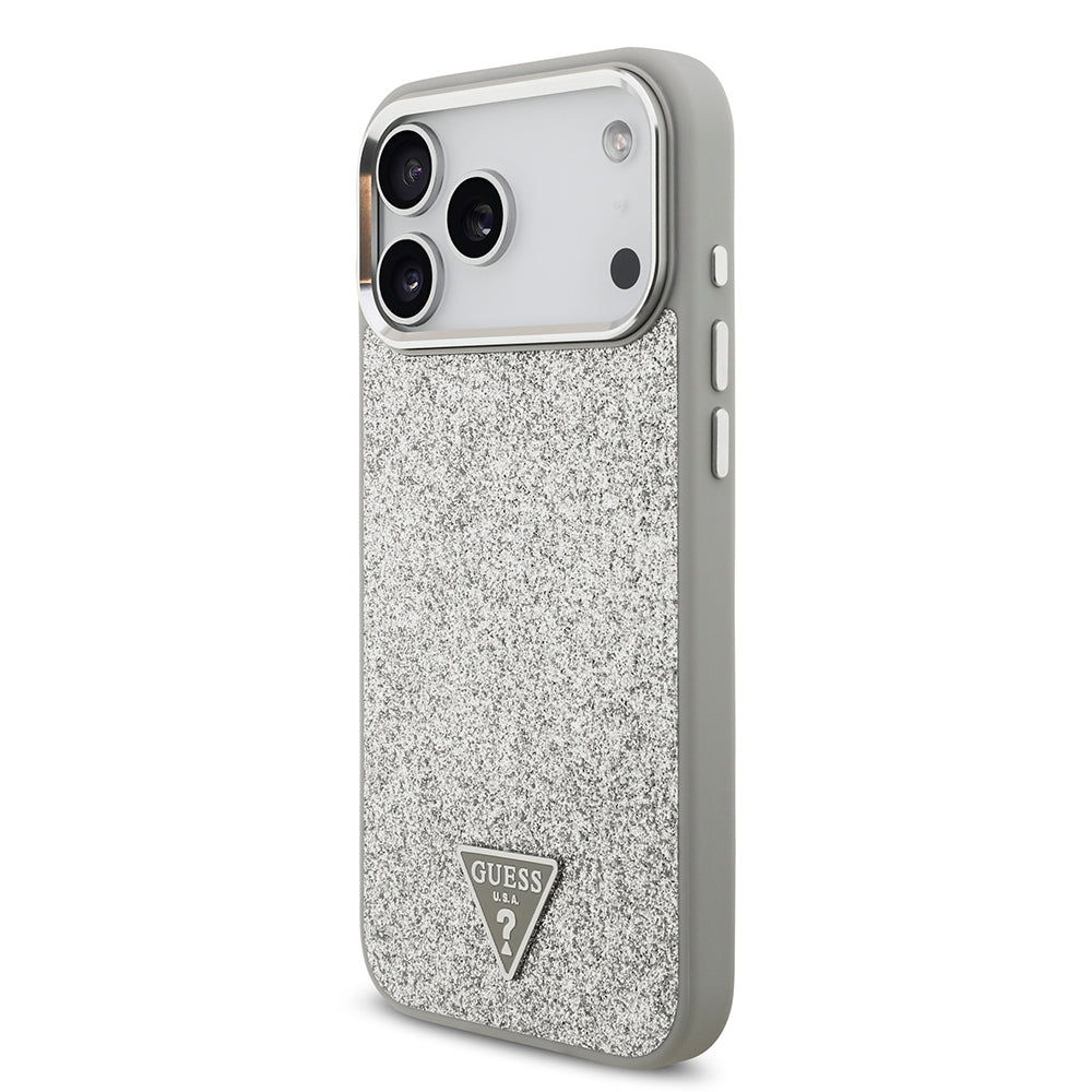 Apple iPhone 17 Pro Max Kılıf Guess M-safe Şarj Özellikli Üçgen Logolu Glitter Kapak Gri