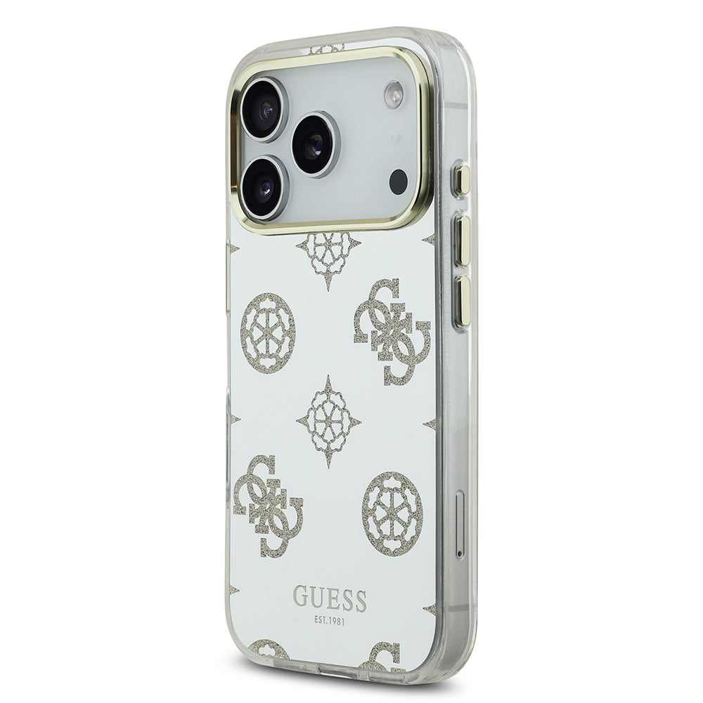Apple iPhone 17 Pro Max Kılıf M-Safe Şarj Özellikli Guess Metal Kamera Çerçeveli Peony Simli Aynalı Kapak Gold