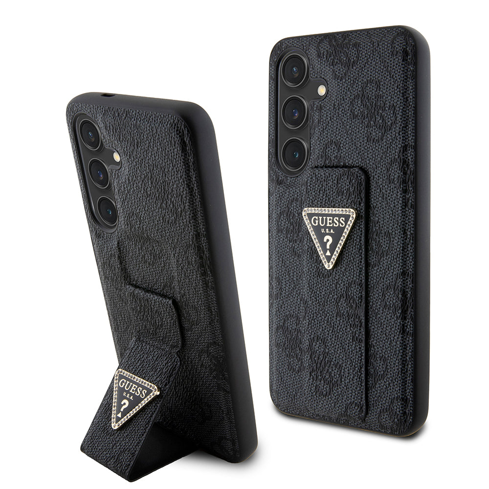 Galaxy S24 Kılıf Guess Taşlı Üçgen Logolu Kapak Siyah