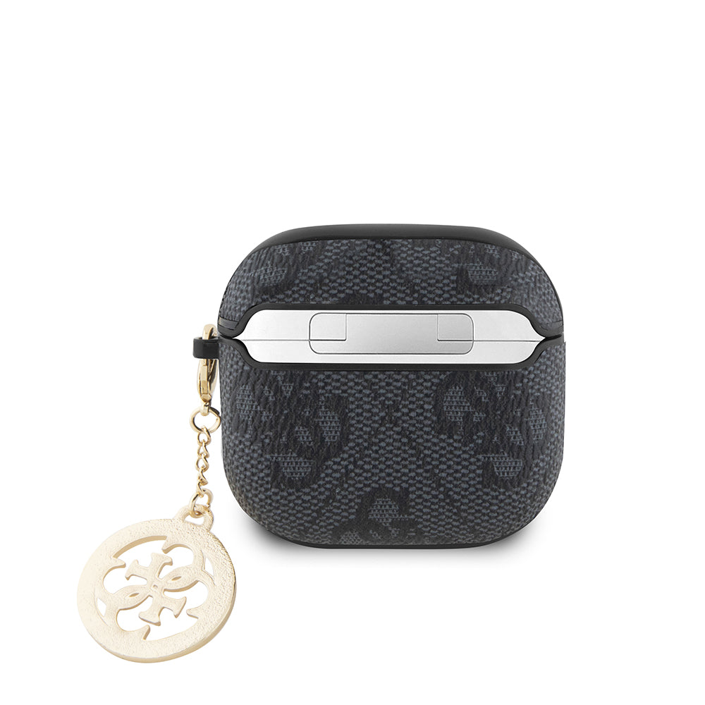 Apple Airpods 4 Kılıf Guess 4G Desenli Taşlı 4G Süs Zincirli Kapak Siyah