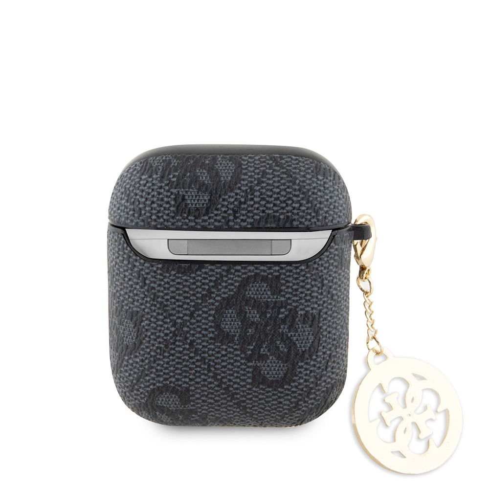 Apple Airpods Kılıf Guess 4G Desenli Taşlı 4G Süs Zincirli Kapak Siyah