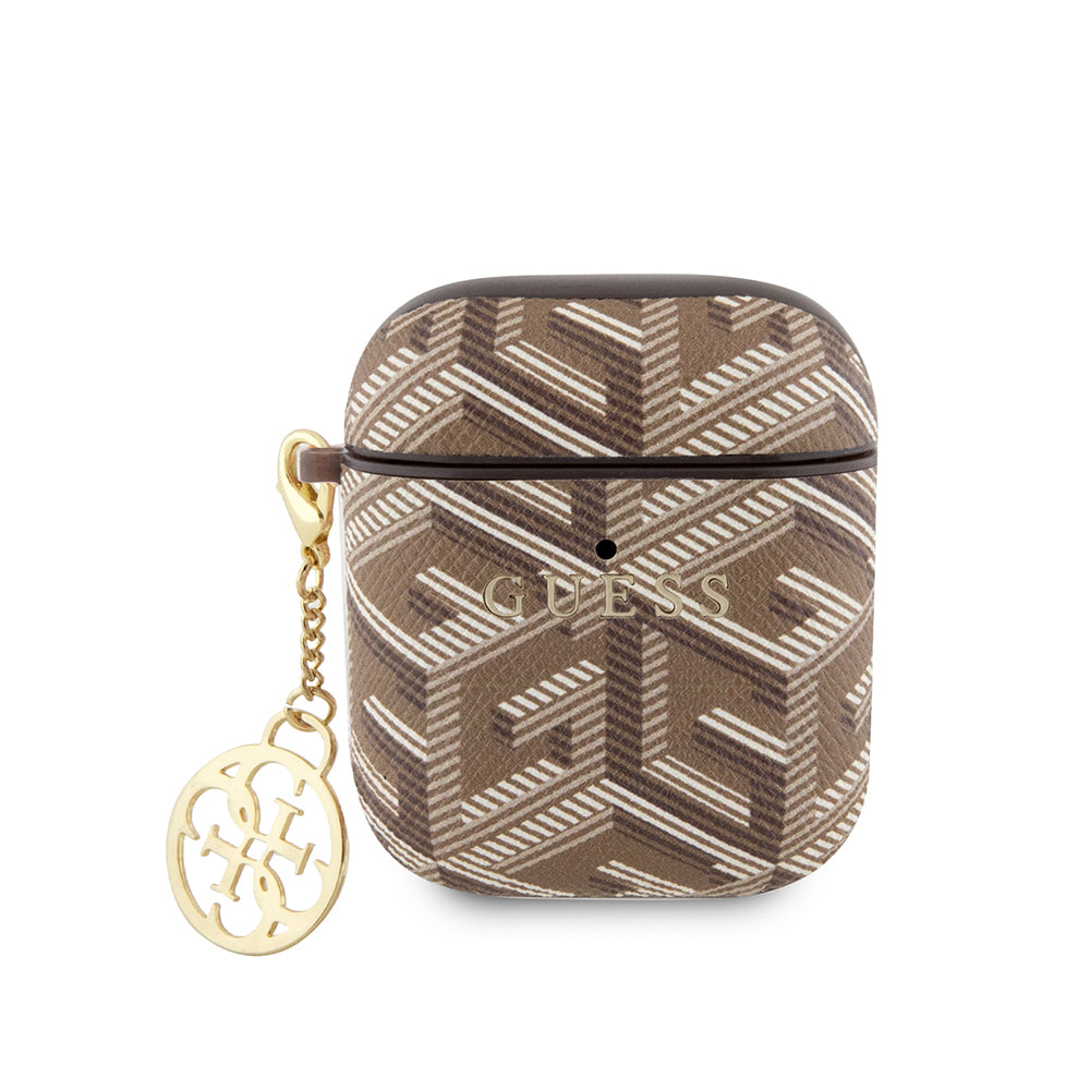 Apple Airpods Kılıf Guess G Cube Desenli 4G Süs Zincirli Kapak Kahverengi