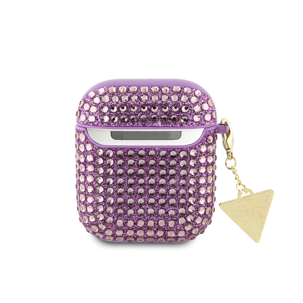 Apple Airpods Kılıf Guess Taş Kaplamalı Üçgen Logolu Kapak Mor