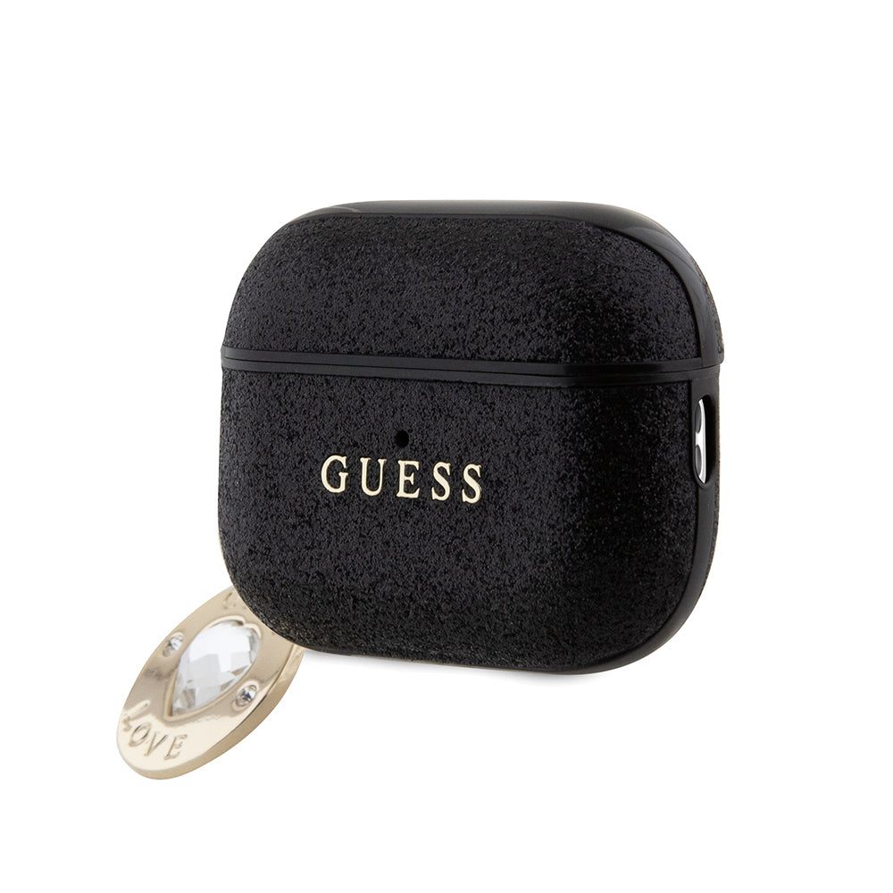 Apple Airpods Pro 2 Kılıf Guess Glitter Elmas Kalp Zincirli Kapak Siyah