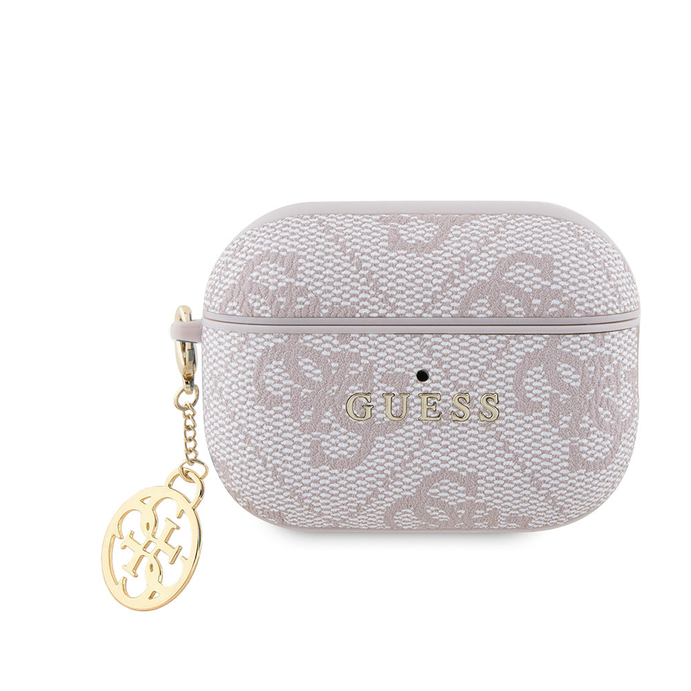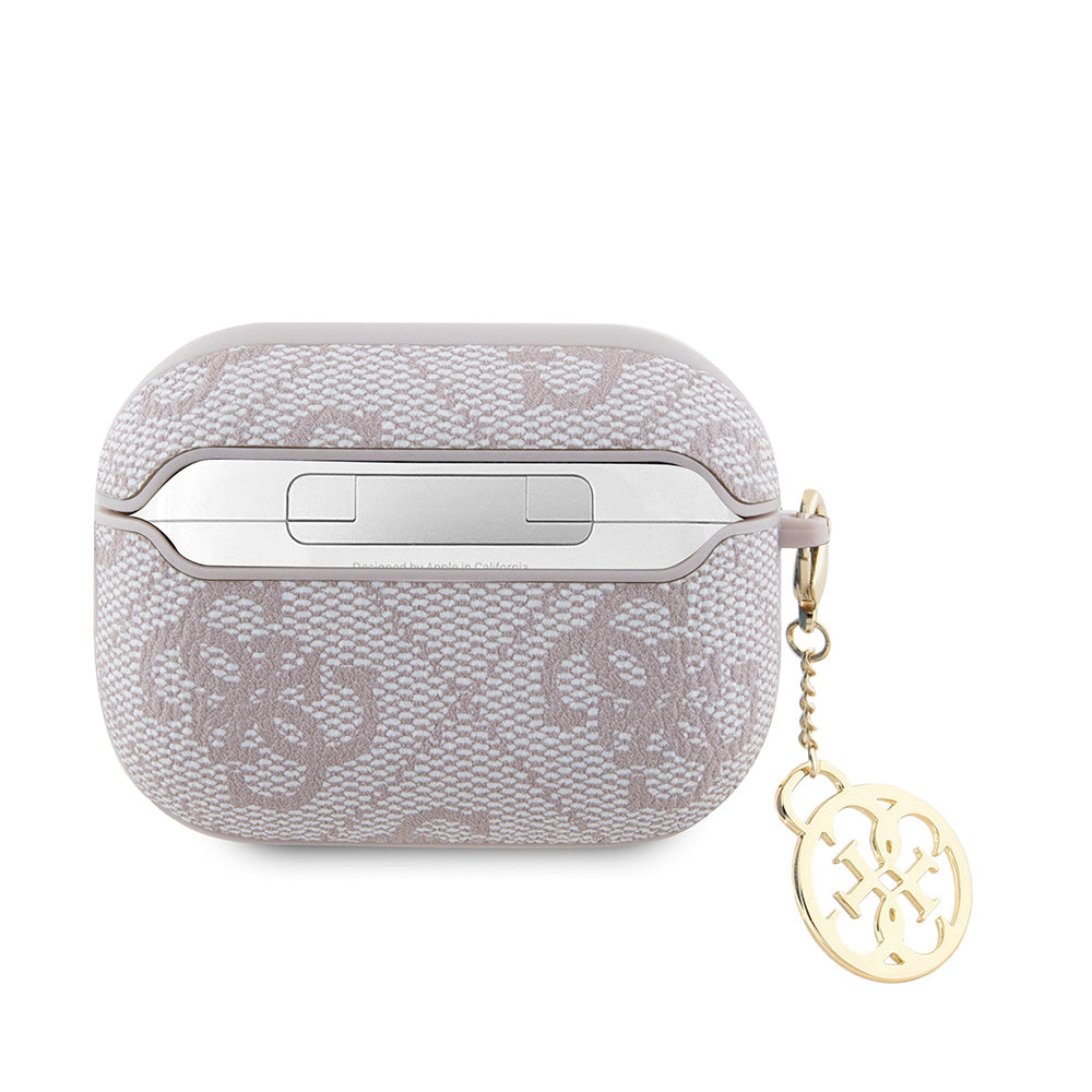 Apple Airpods Pro 2 Kılıf Guess Metal Yazı Logolu 4G Charm Kapak Pembe