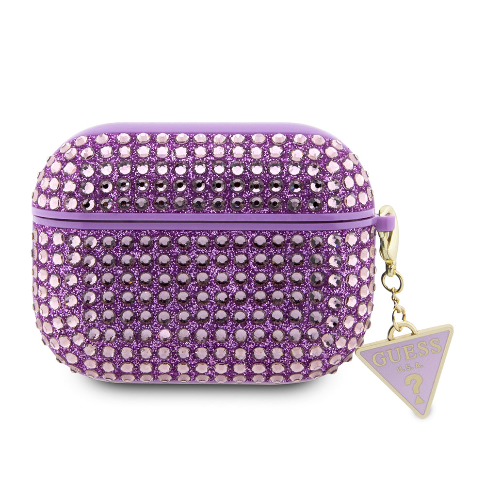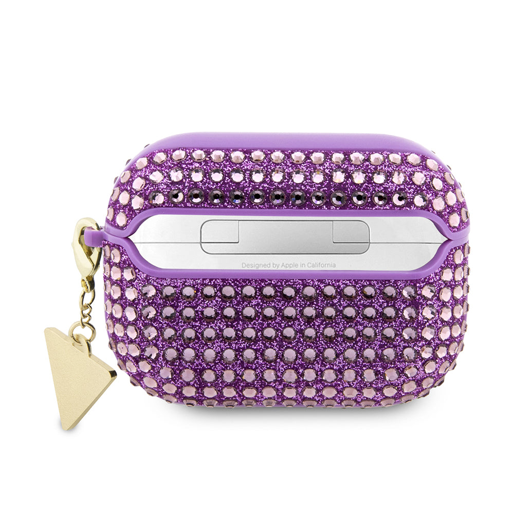 Apple Airpods Pro 2 Kılıf Guess Taş Kaplamalı Üçgen Logolu Kapak Mor