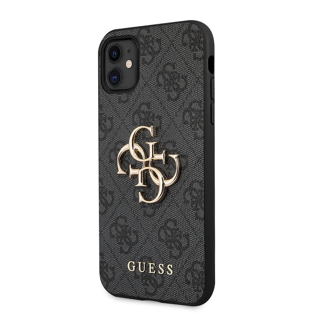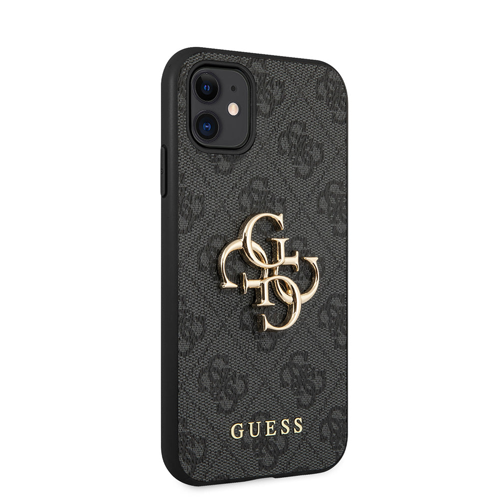 Apple iPhone 11 Kılıf Guess PU Deri Büyük Metal Logolu Kapak Siyah