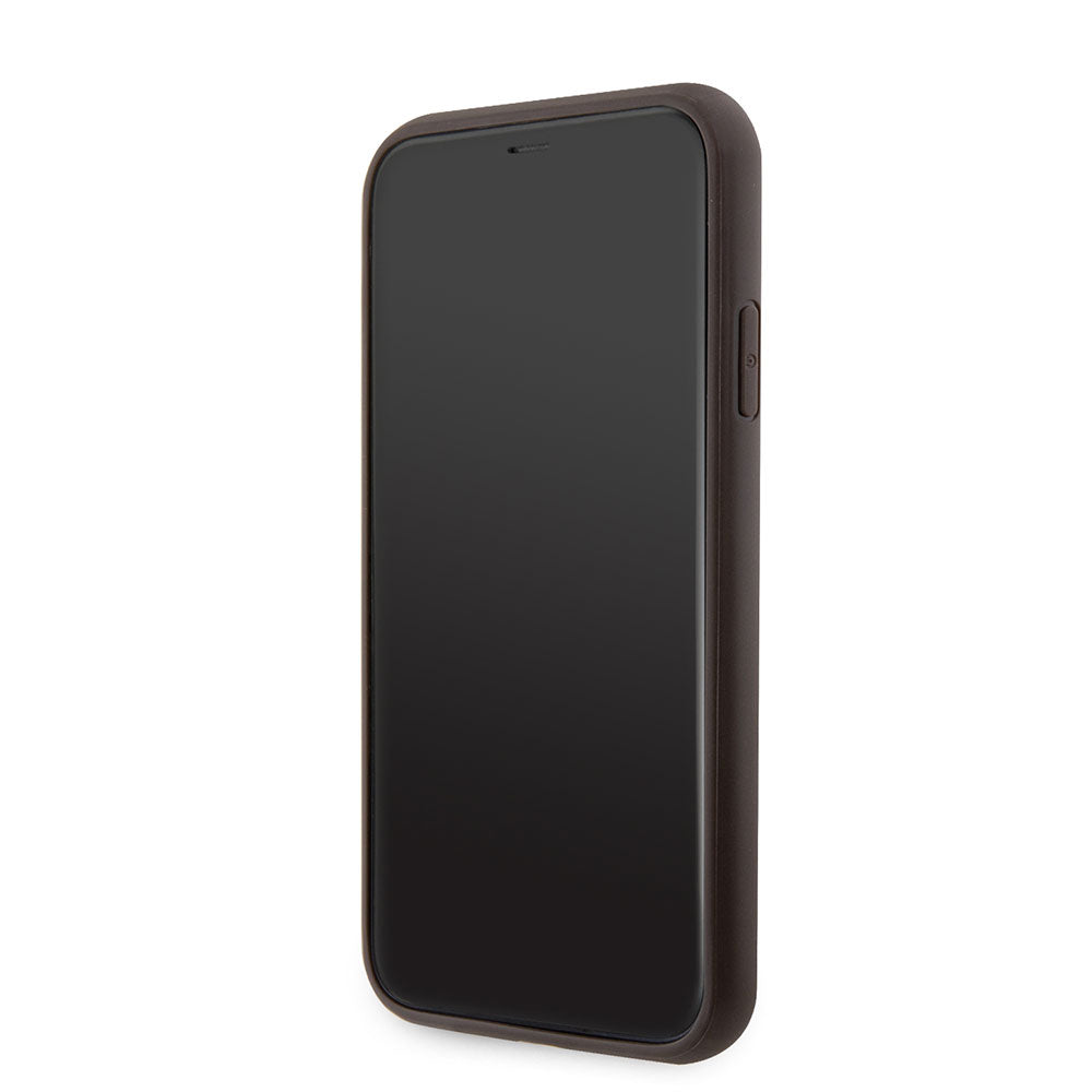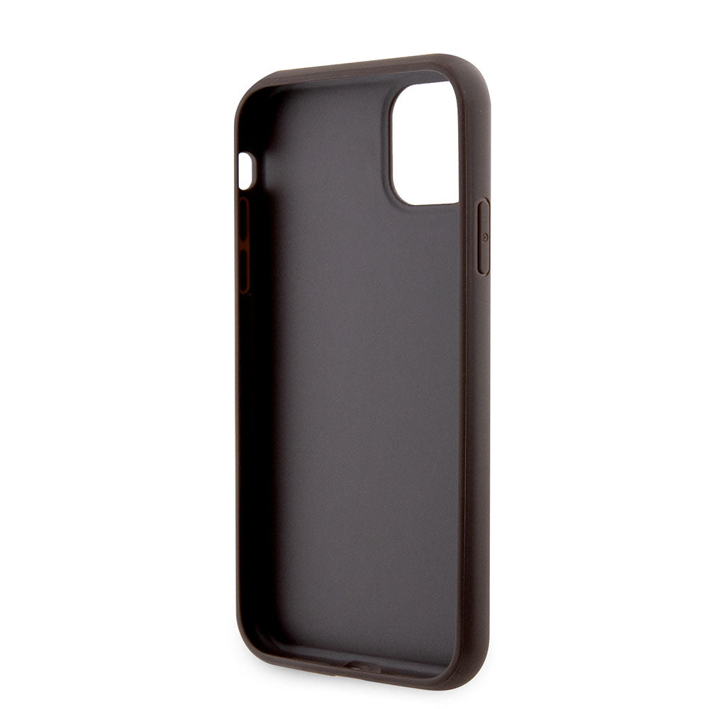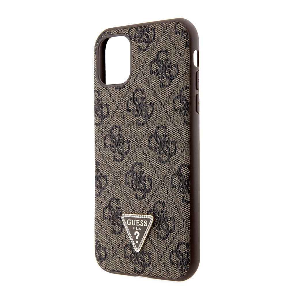 Apple iPhone 11 Kılıf Guess PU Deri Taşlı Üçgen Logolu 4G Desenli Kapak Kahverengi