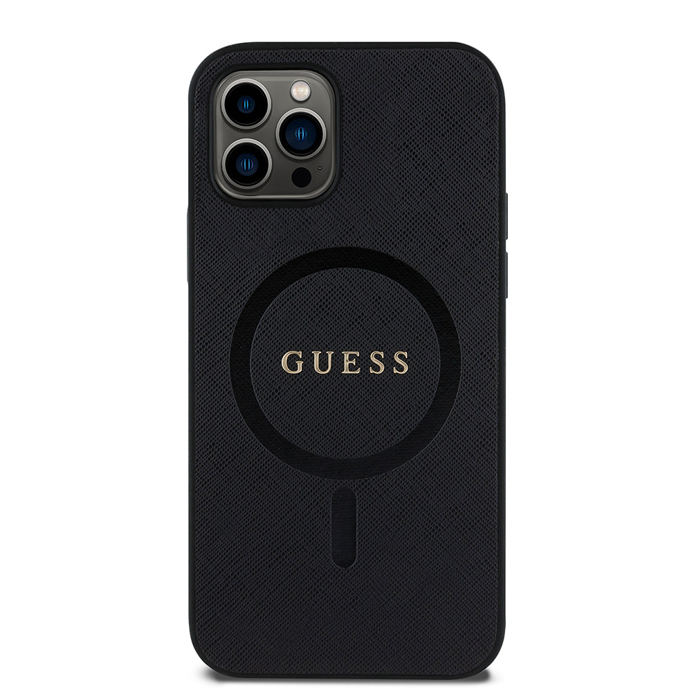 Apple iPhone 12 Pro Kılıf Guess Magsafe Şarj Özellikli Saffiano Classic Kapak Siyah