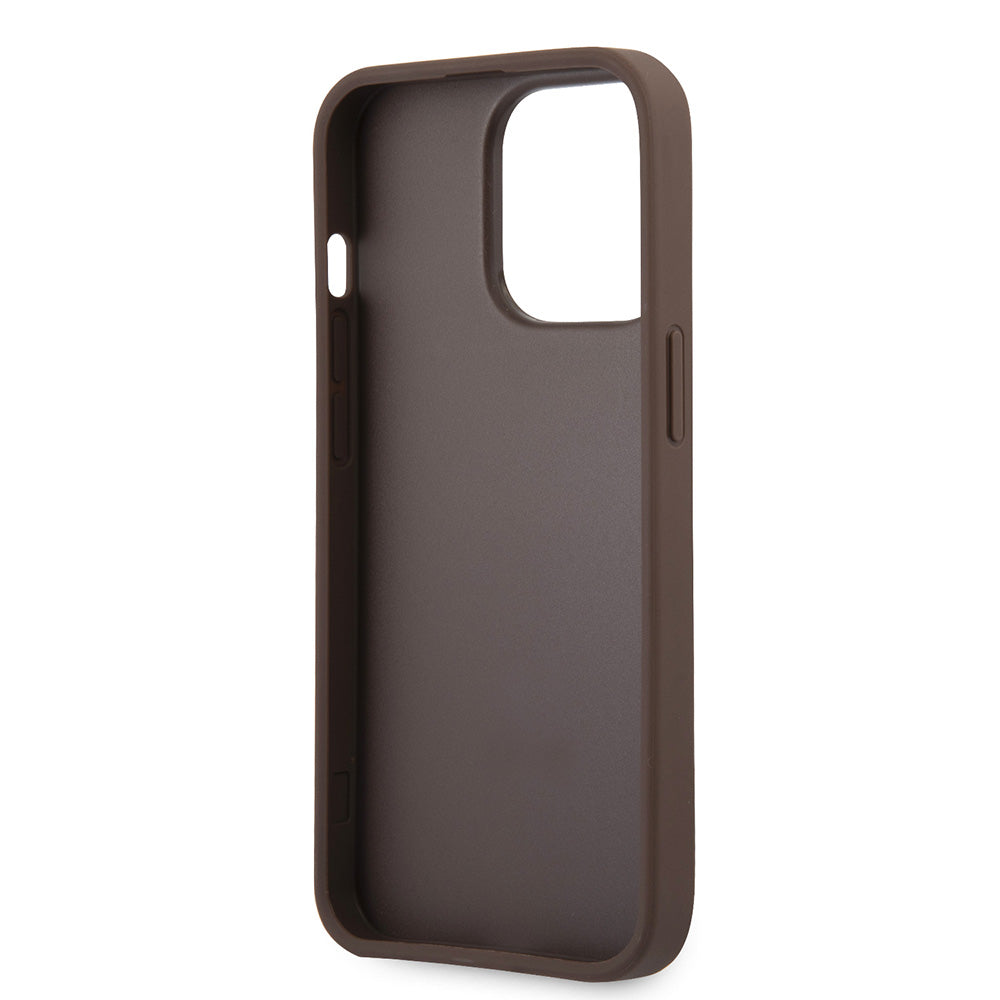 Apple iPhone 13 Pro Kılıf Guess 4G Desenli 4G Metal Logolu PU Deri Kapak Kahverengi