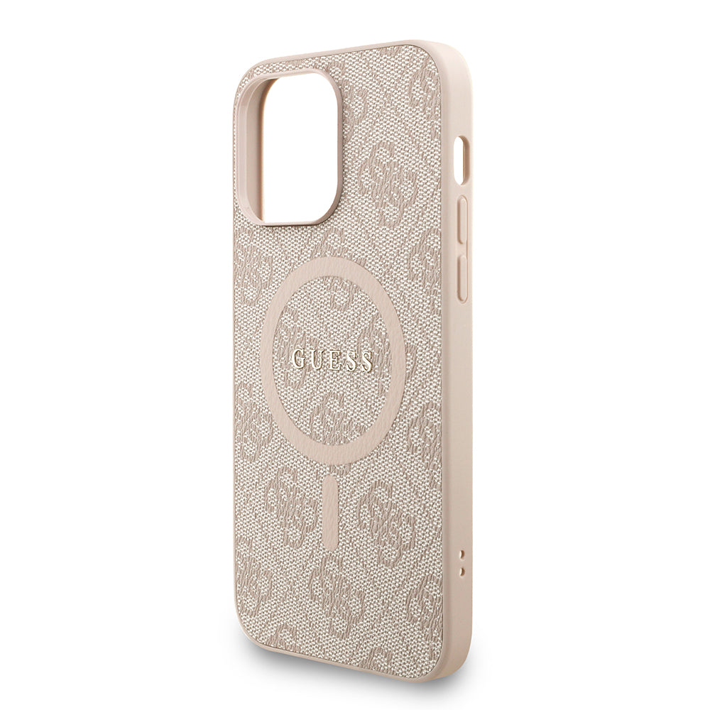 Apple iPhone 13 Pro Max Kılıf Guess M-safe Şarj Özellikli Bilek Askı İpli Yazı Logolu Kapak Pembe