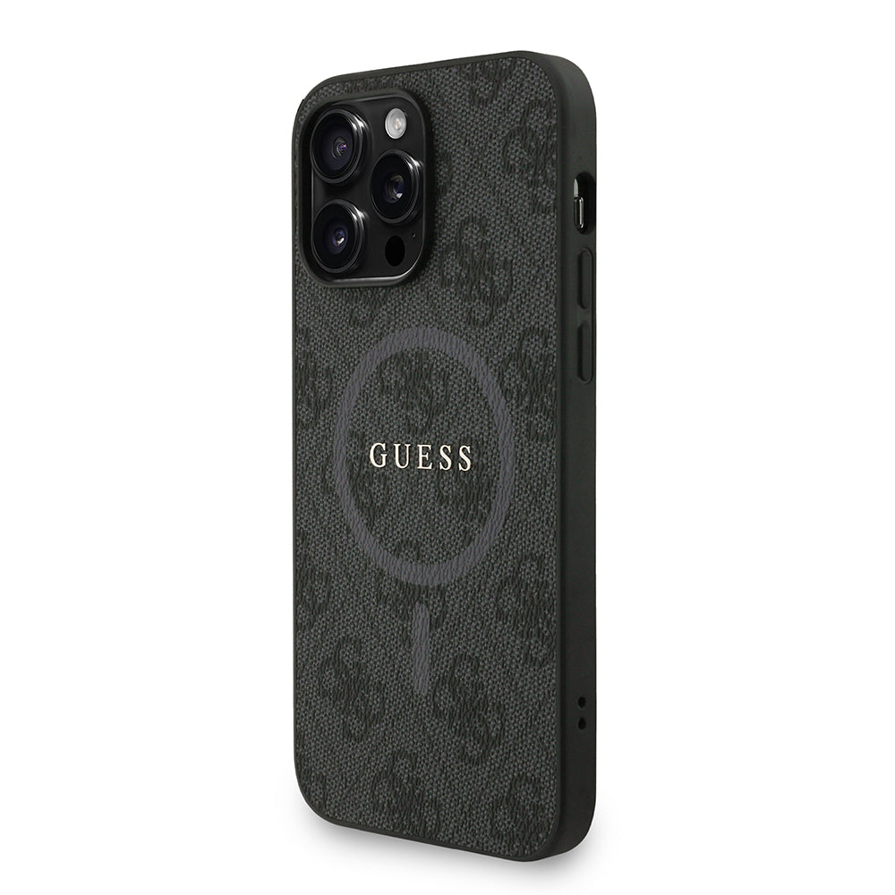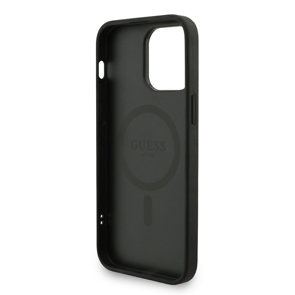 Apple iPhone 13 Pro Max Kılıf Guess M-safe Şarj Özellikli Bilek Askı İpli Yazı Logolu Kapak Siyah