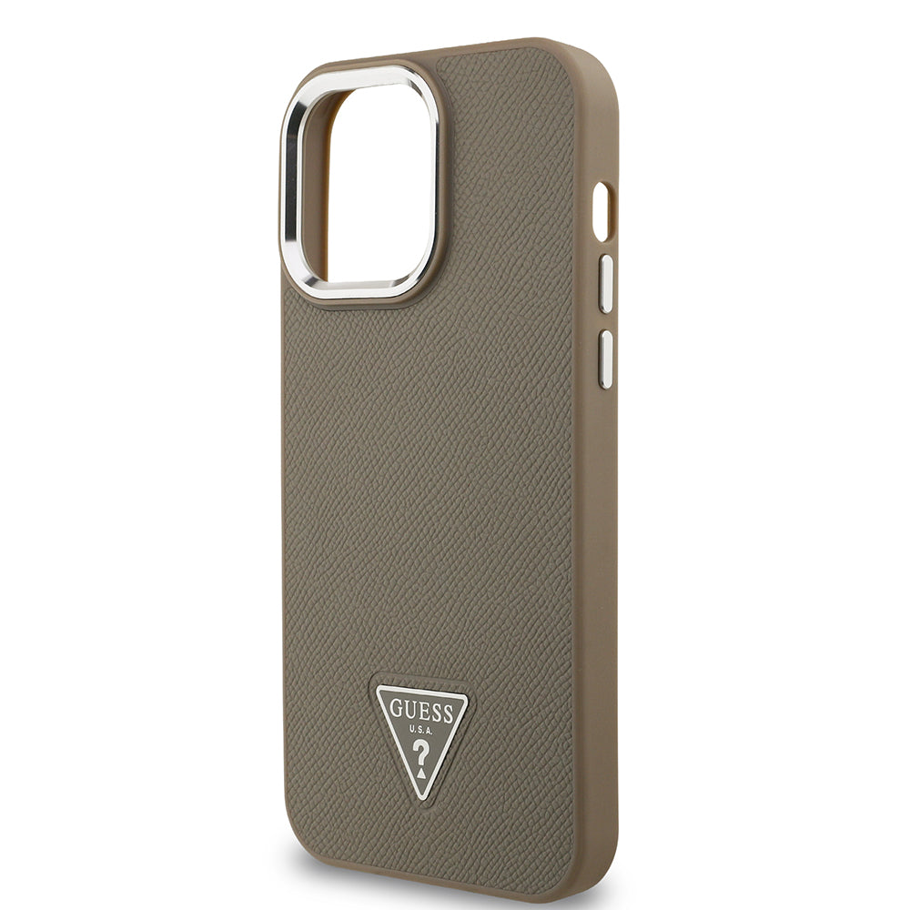 Apple iPhone 13 Pro Max Kılıf Guess Magsafe Şarj Özellikli Grained Triangle Kapak Kahverengi
