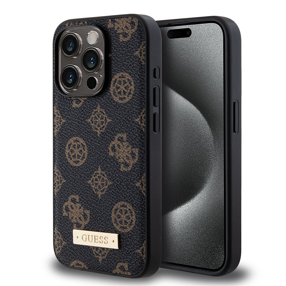 Guess Magsafe Şarj Özellikli PU Deri Desenli Metal Plaka Logolu Kapak