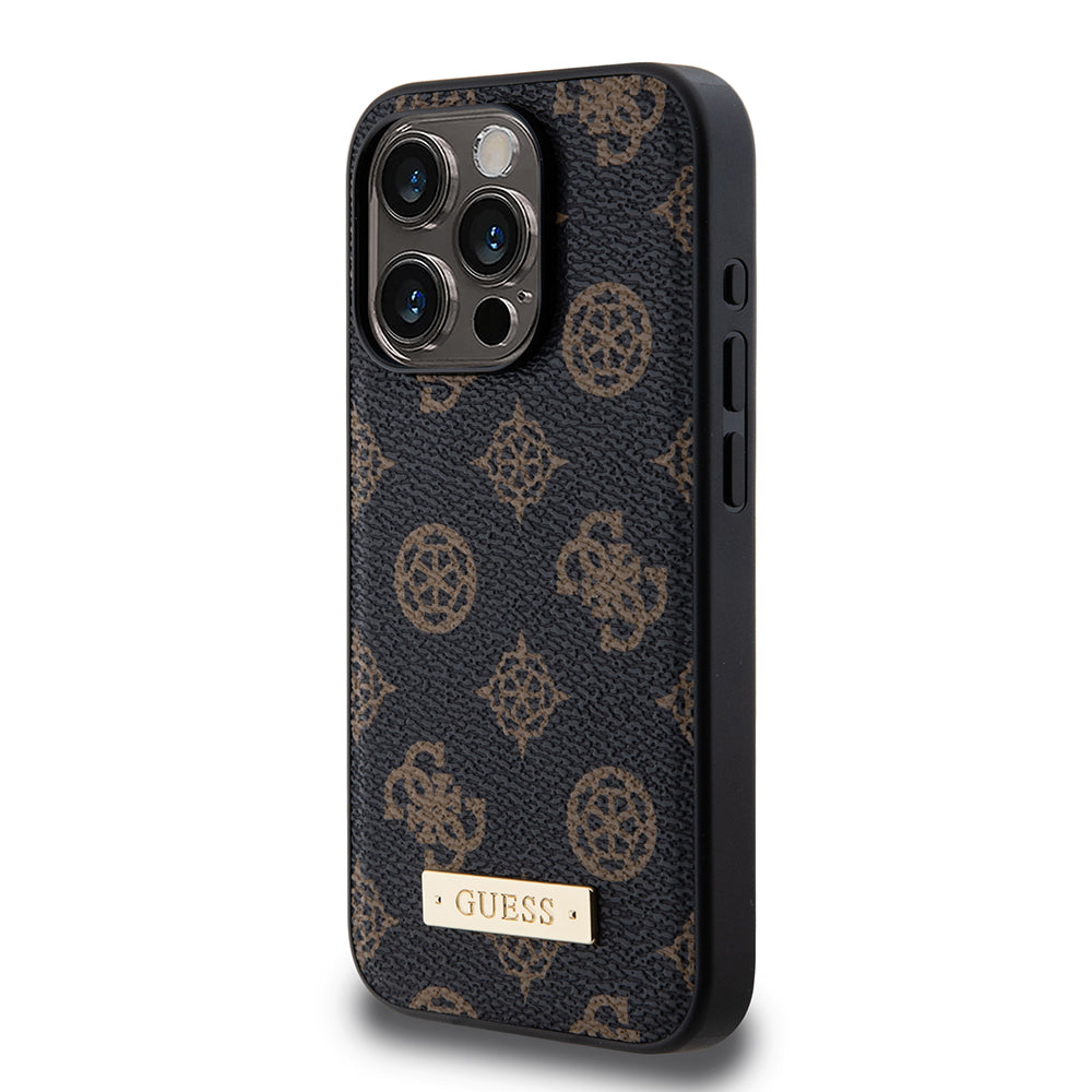 Apple iPhone 14 Pro Kılıf Guess Magsafe Şarj Özellikli PU Metal Logolu Kapak Siyah