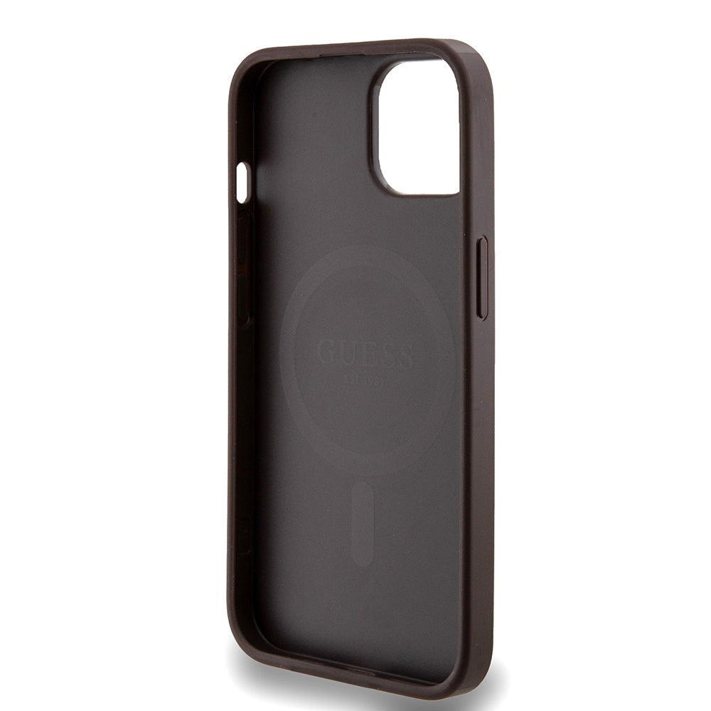 Apple iPhone 13/15 Kılıf Guess Magsafe Şarj Özellikli 4G Desenli Yazı Logolu Kapak Kahverengi