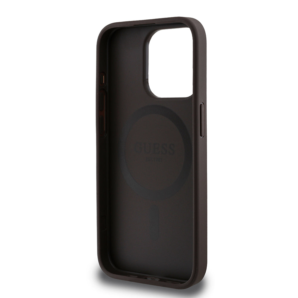 Apple iPhone 15 Pro Max Kılıf Guess Magsafe Uyumlu Gül Baskılı ve 4G Desenli Kapak Kahverengi