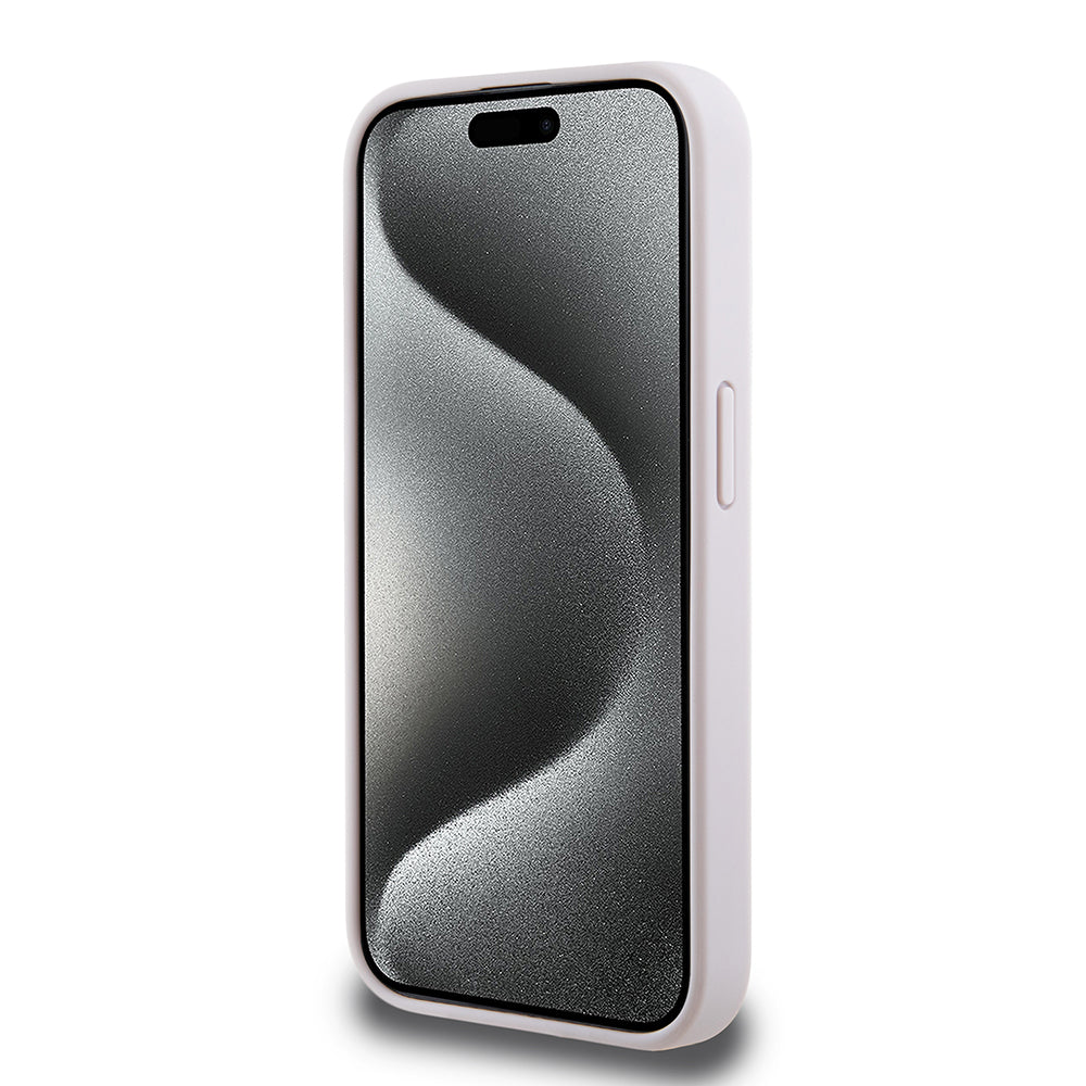 Apple iPhone 15 Pro Max Kılıf Guess PU Deri 4G Metal Logolu Desenli Kapak Pembe