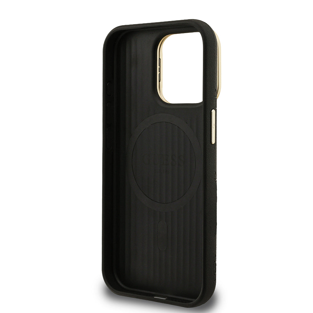 Apple iPhone 15 Pro Max Kılıf Guess M-safe Şarj Özellikli Kamera Standlı Peony Kapak PU Deri Siyah