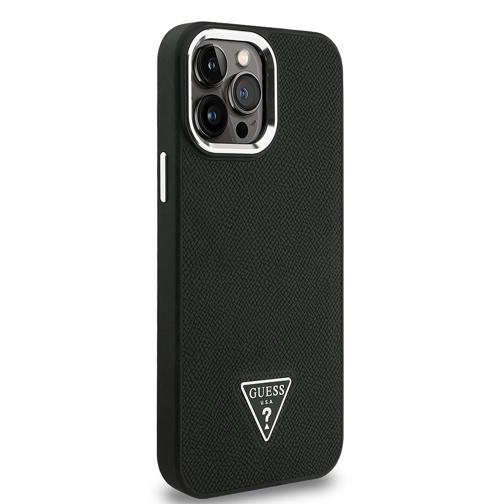 Apple iPhone 15 Pro Max Kılıf Guess Magsafe Şarj Özellikli Grained Triangle Kapak Siyah