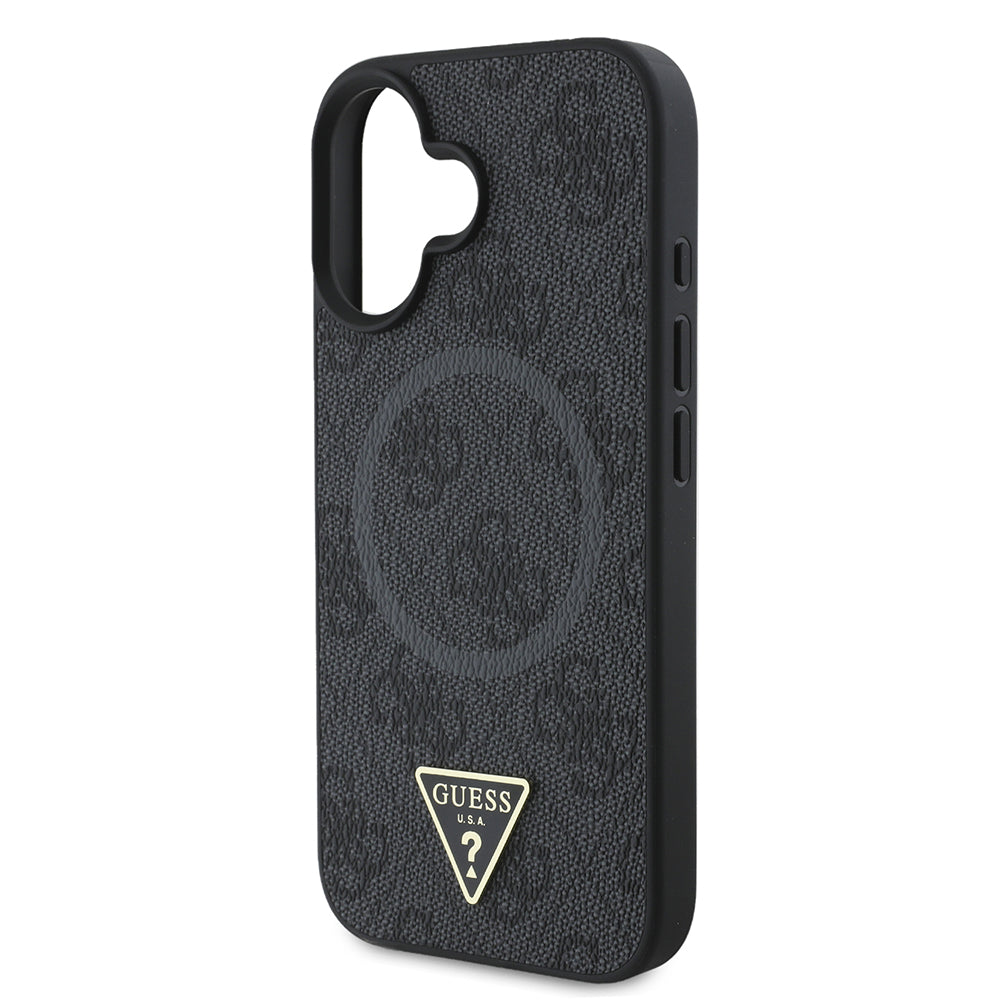 Apple iPhone 16 Kılıf Guess Magsafe Şarj Özellikli PU Üçgen Logolu 4G Desenli Kapak Siyah