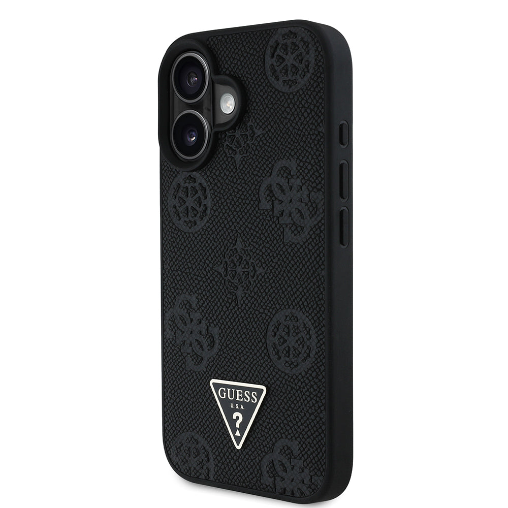 Apple iPhone 16 Kılıf Guess Magsafe Şarj Özellikli Üçgen Logolu PU Deri Peony Kapak Siyah