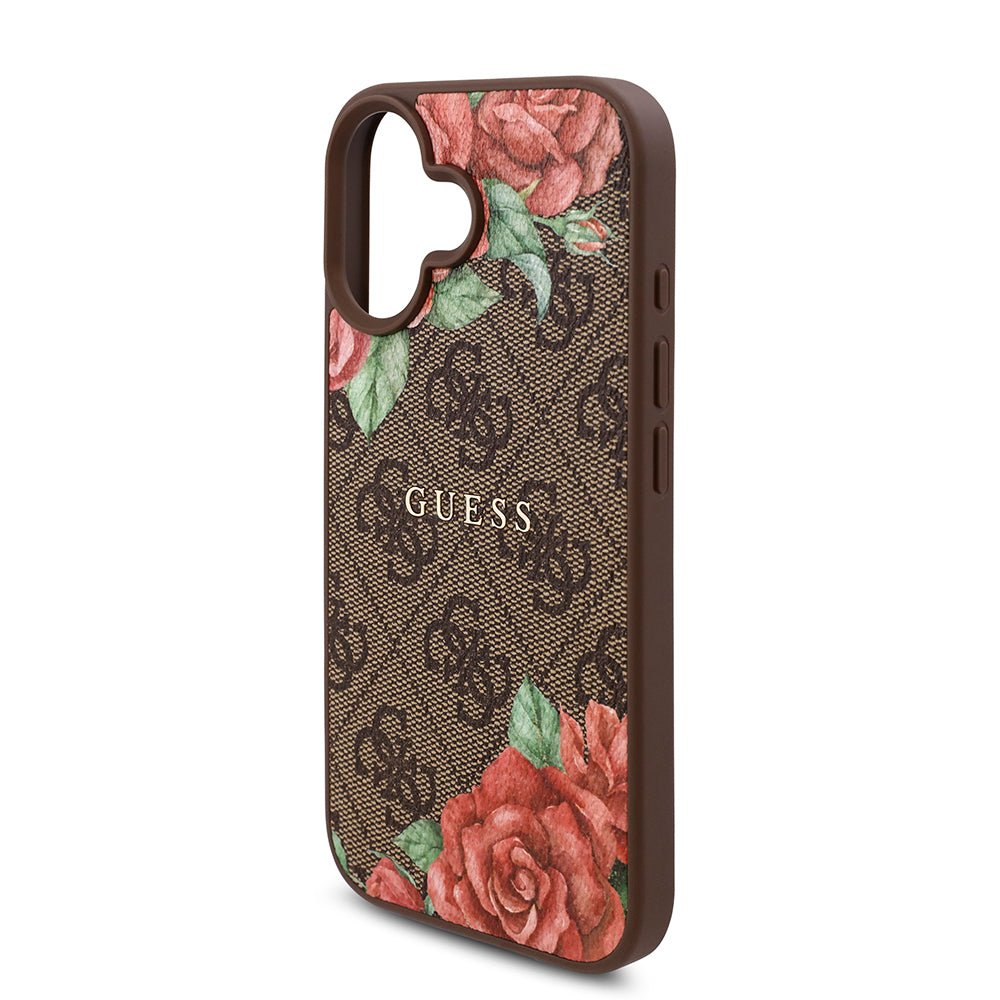 Apple iPhone 16 Plus Kılıf Guess Magsafe Uyumlu Gül Baskılı ve 4G Desenli Kapak Kahverengi