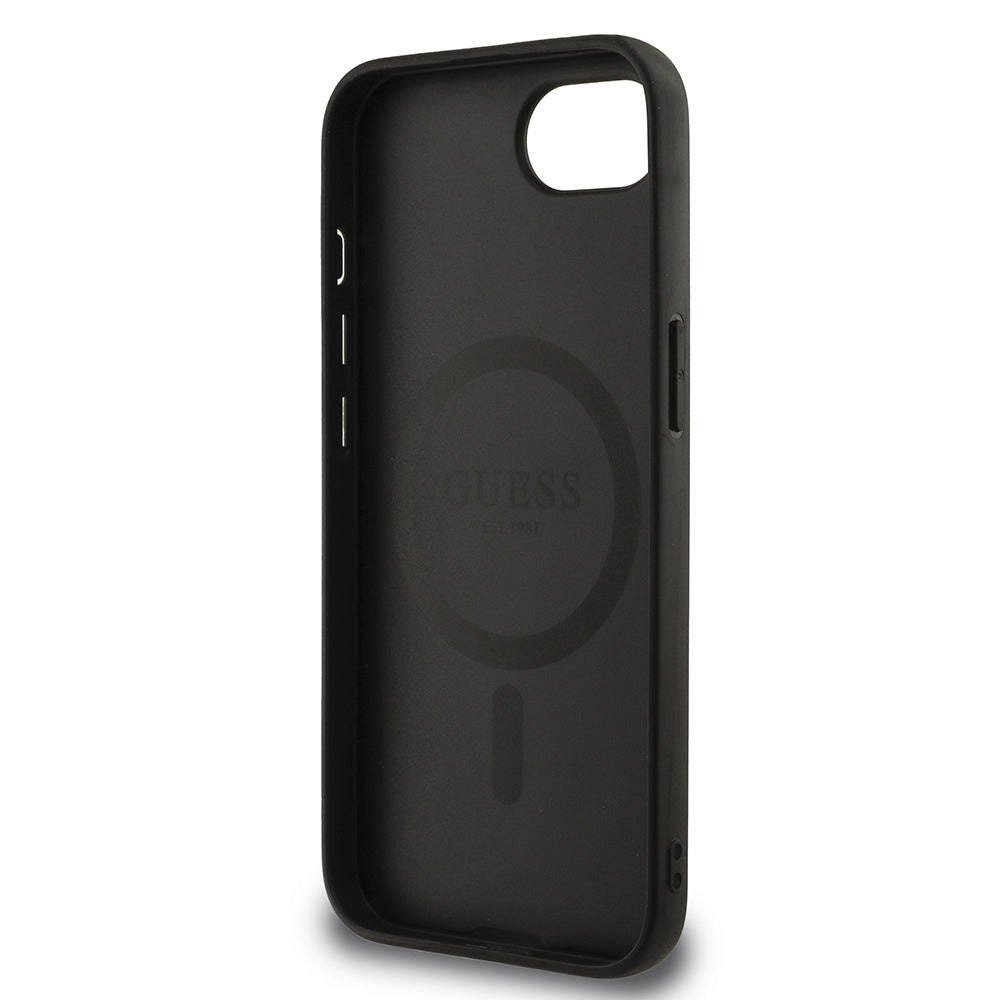 Apple iPhone 16e Kılıf Guess Magsafe Şarj Özellikli Yazı Logolu Peony Kapak Siyah
