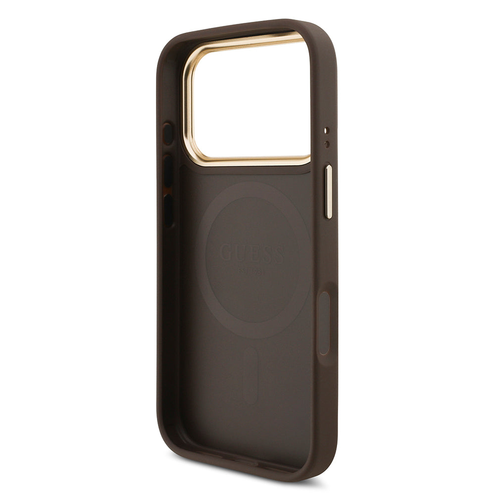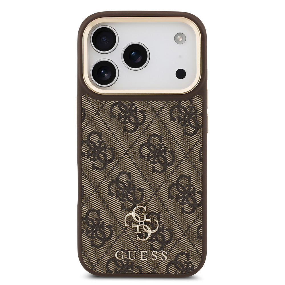 Apple iPhone 17 Pro Guess 3'lü Aksesuar Seti 4G ve Yazı Logolu Kılıf Ekran ve Lens Koruyucu Kahverengi
