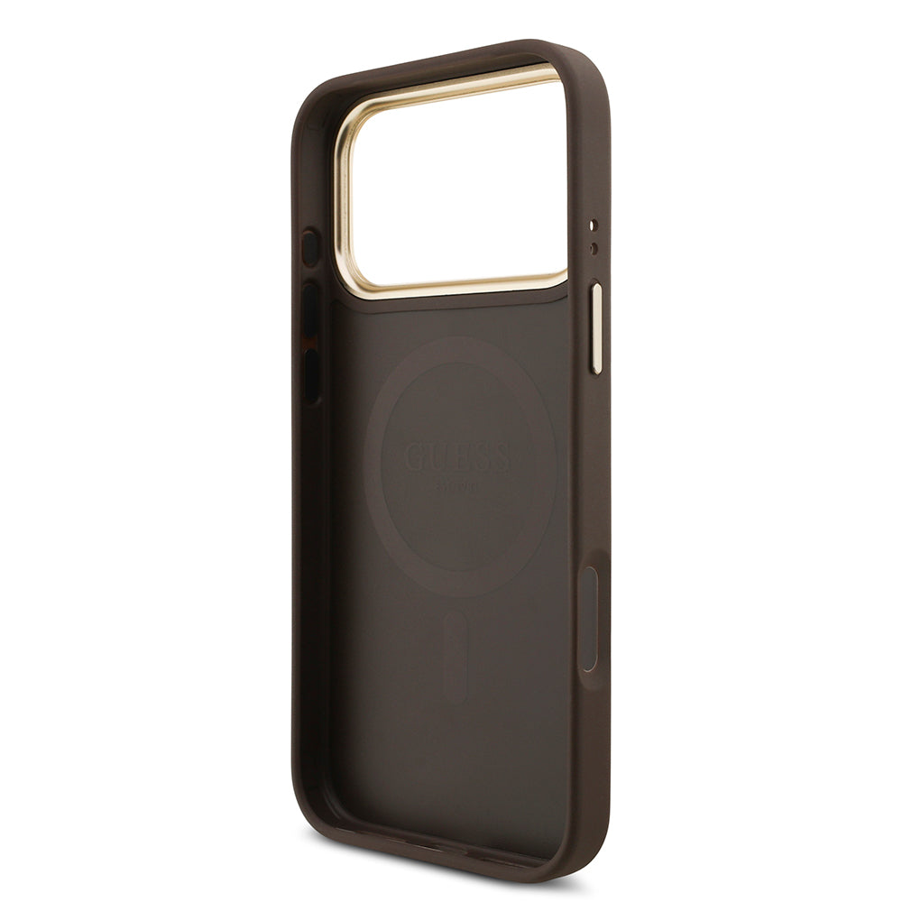 Apple iPhone 17 Pro Max Kılıf Guess M-safe Şarj Özellikli Askılı ve Kartlıklı 4G Logo Kapak Kahverengi