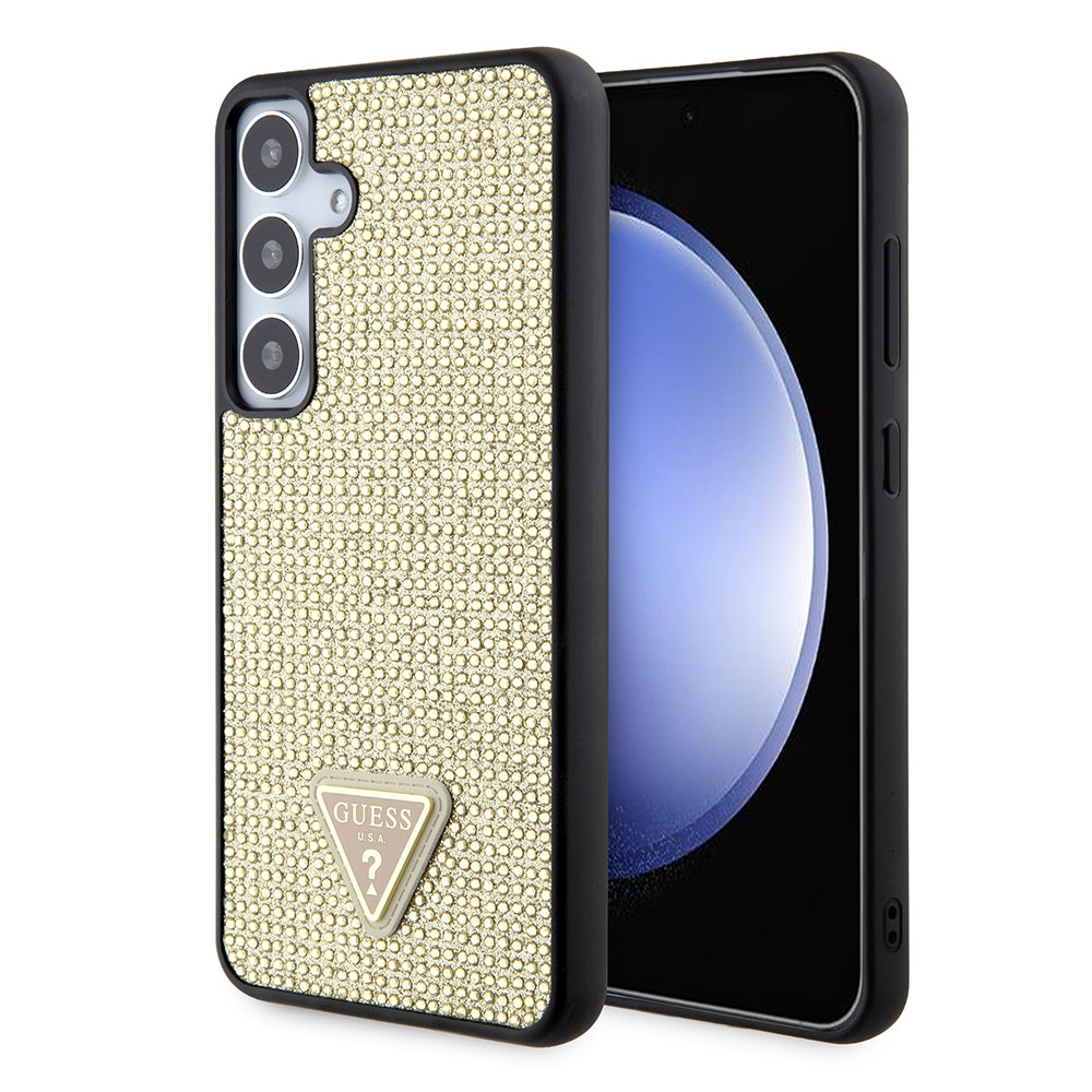 Galaxy S24 Kılıf Guess Taşlı Üçgen Logolu Kapak Gold