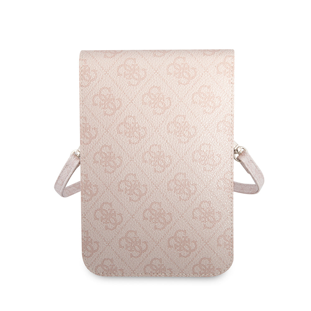 Guess Omuz Çantası 4G Desenli Üçgen Logolu 5 Hazneli Askılı Mıknatıs Kapaklı Çanta Pembe