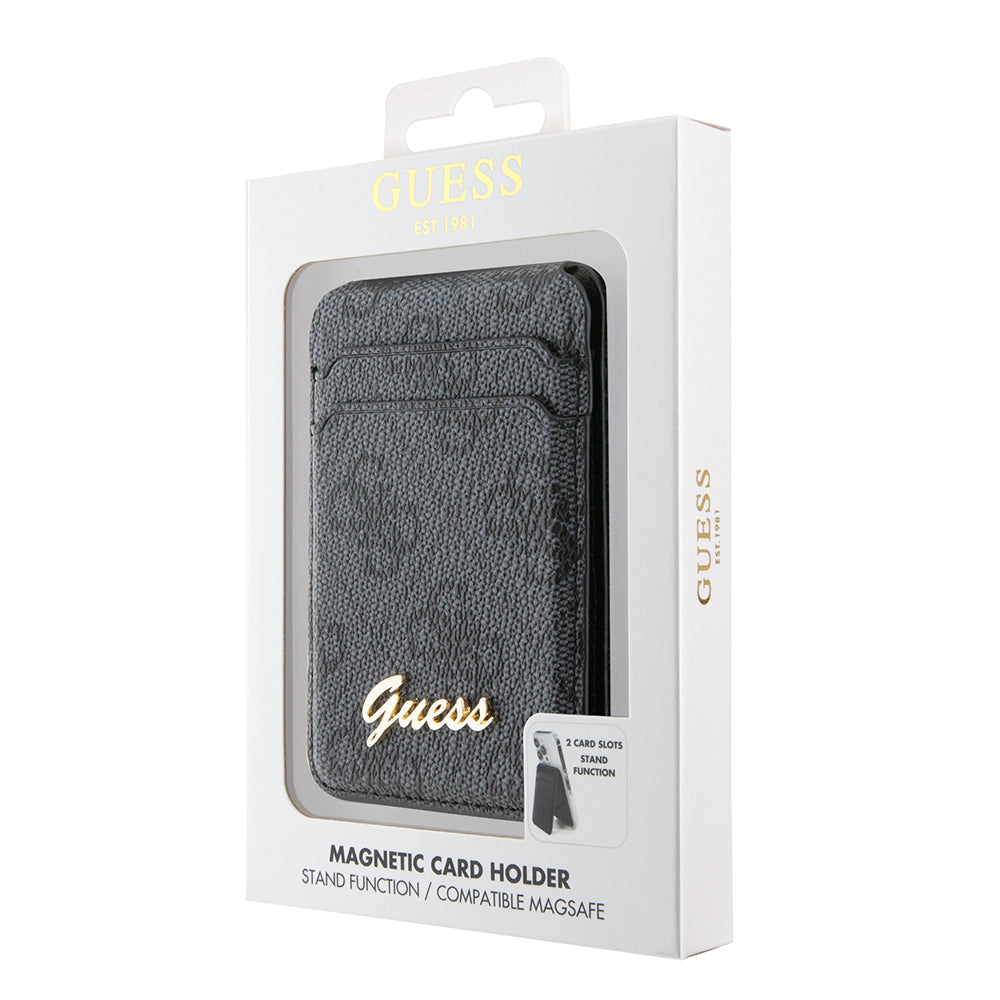 Guess Standlı Magnetik Kartlık 4G Desenli Metal Script Logolu Tasarım Siyah