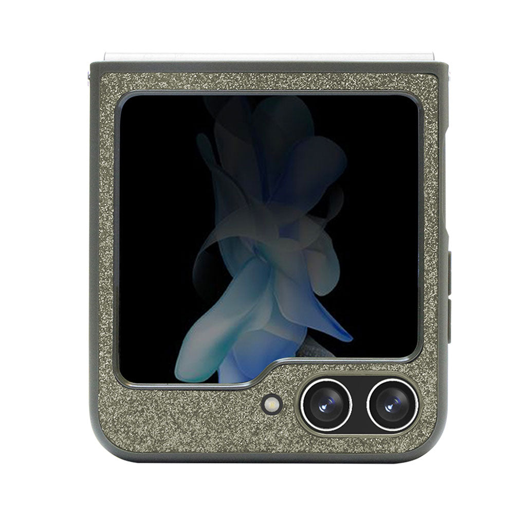 Galaxy Z Flip 5 Kılıf Guess Yazı Logolu Glitter Flakes Kapak Haki