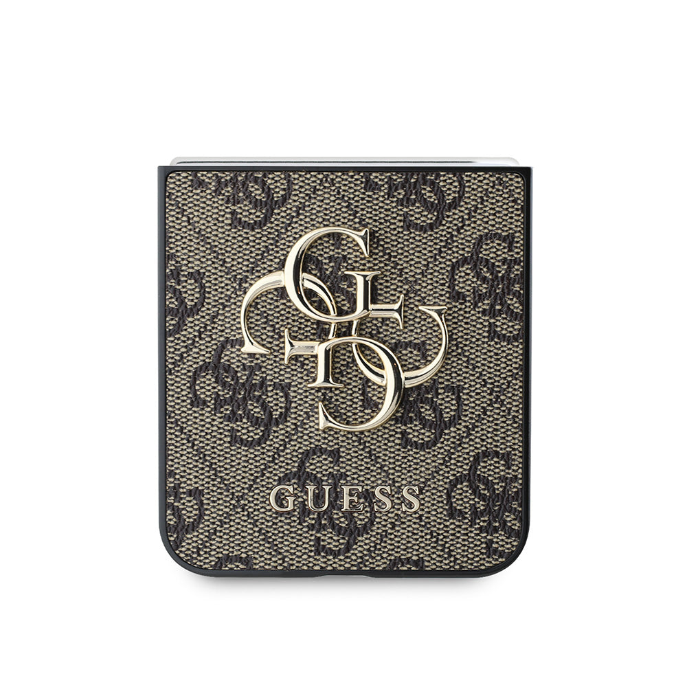 Galaxy Z Flip 6 Kılıf Guess Deri 4G Metal Logolu Kapak Kahverengi